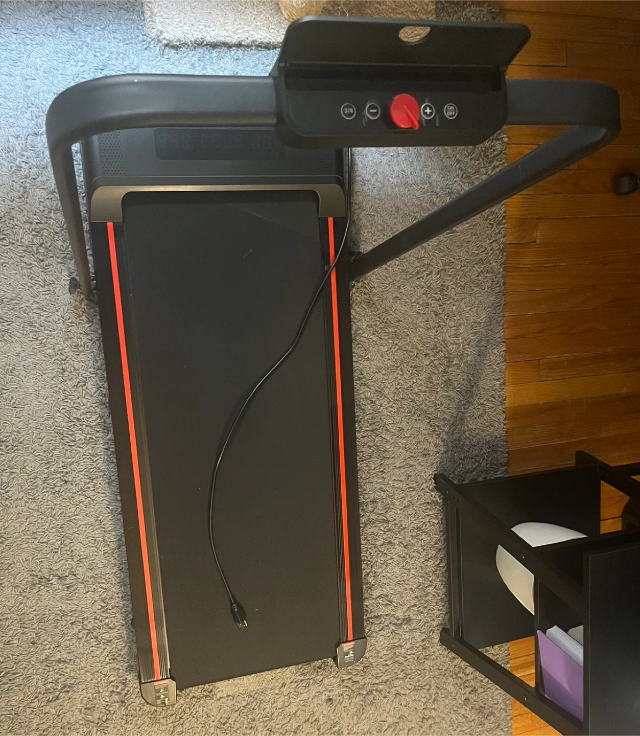 Collapsible design with LED display that tracks speed, distance, time, and calories. Multiple speeds to suit your pace. Includes remote for easy control.