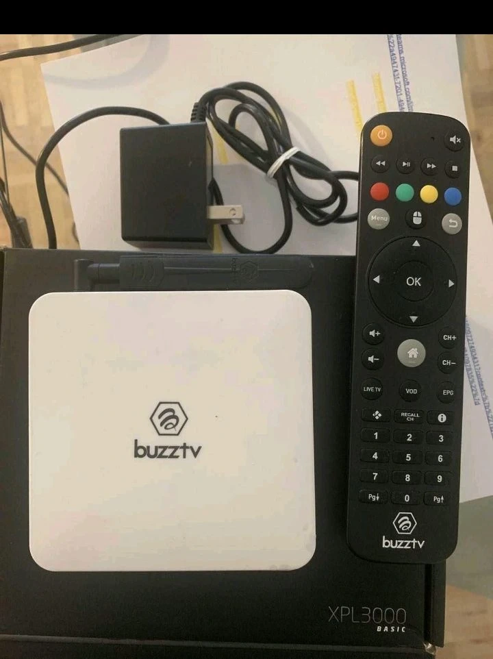 This BuzzTV XPL3000 Basic is an Android TV box that connects to your television. It comes with a remote control and power adapter. Setup is straightforward for streaming your favourite content.