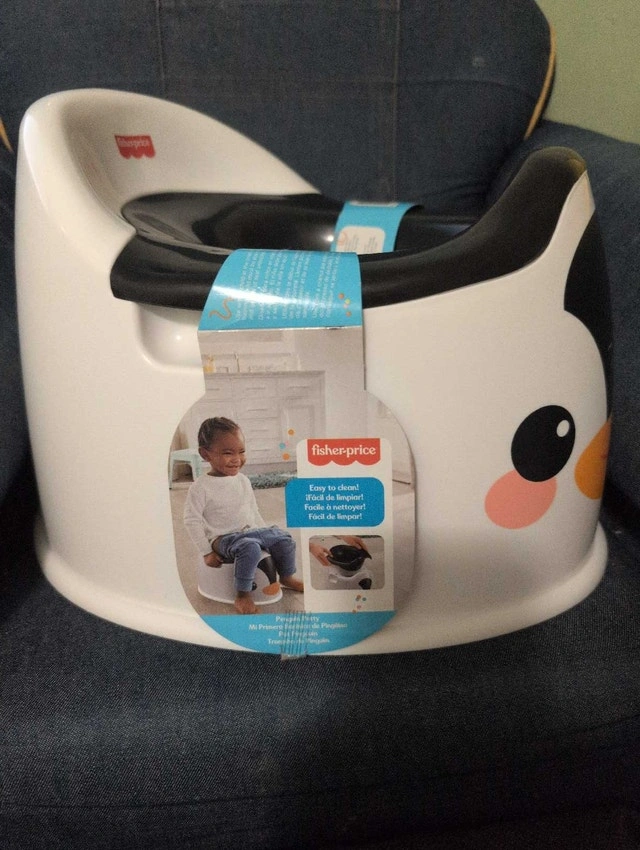 Selling a brand new Fisher-Price Penguin Potty to help your little one transition with a bit of fun! This potty features a playful penguin design and is easy to clean. Key features include: Easy to clean, removable bowl. Splash guard for less mess. Penguin design to make potty training fun. Get this adorable potty for your little one today! If the ad's still up, it's still available. Cash accepted.