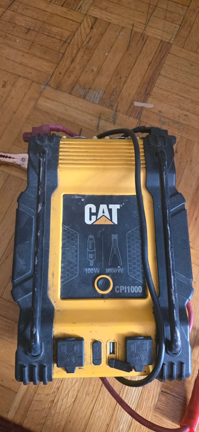 This CAT CPI1000 power inverter is ready for use. It offers 100W and 1000W outputs. Multiple outlets and USB ports are included.