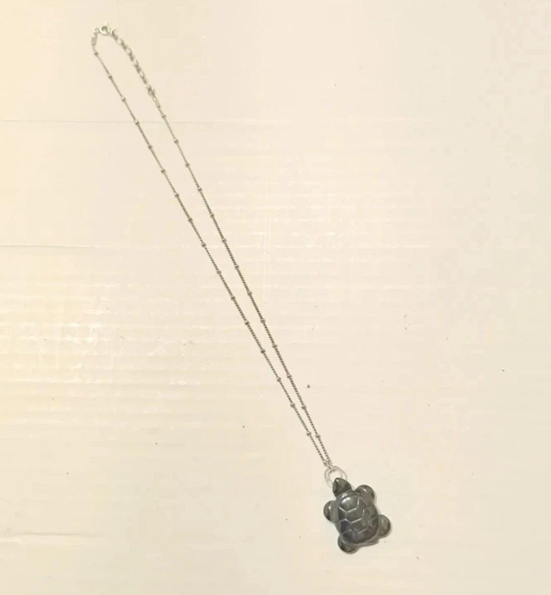 Buy & Sell925 Sterling Silver Turtle Pendant Necklace925 Sterling Silver Turtle Pendant Necklace$25A cool turtle pendant necklace. The pendant appears to be made of hematite with etched lines on the back. The chain has a lobster clasp closure.ConditionNewSize9 Inches WHERE TO MEETDean's NOFRILLS VancouverView MapSELLERverifiedAnitaRiley Park1628 reviews0 chats·1 favorites·18 viewsSEND CHAT TO SELLERHi Anita! I’m interested in your listing.Hi Anita! I’m interested in your listing.Get the Karrot app to chatSign In to chat