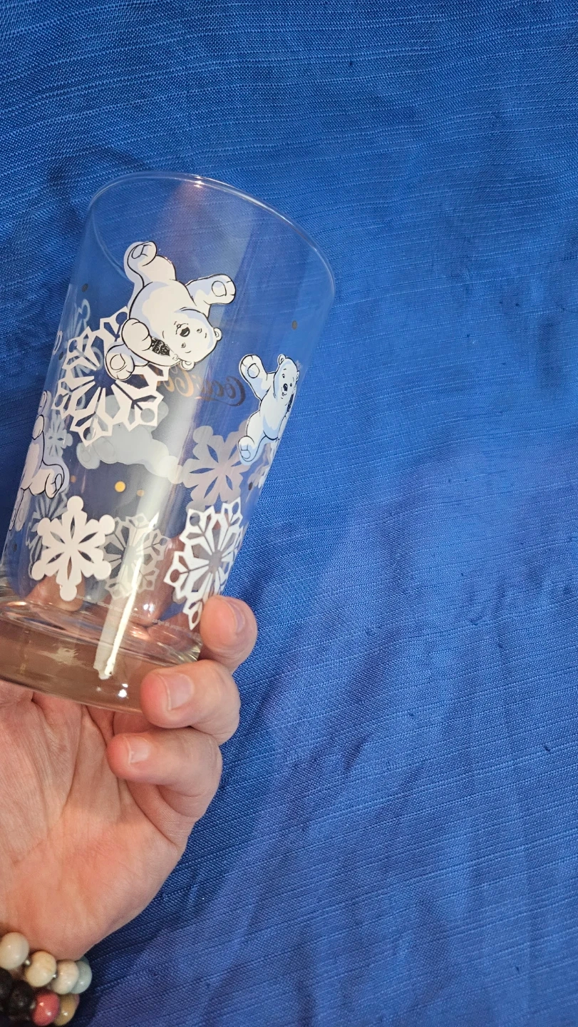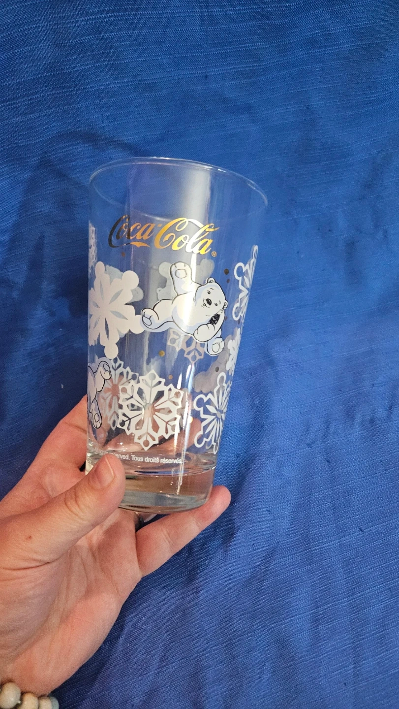 This clear glass features the classic Coca-Cola logo with a cute polar bear and snowflake design. It's made of durable glass. Perfect for enjoying your favourite cold beverage!
