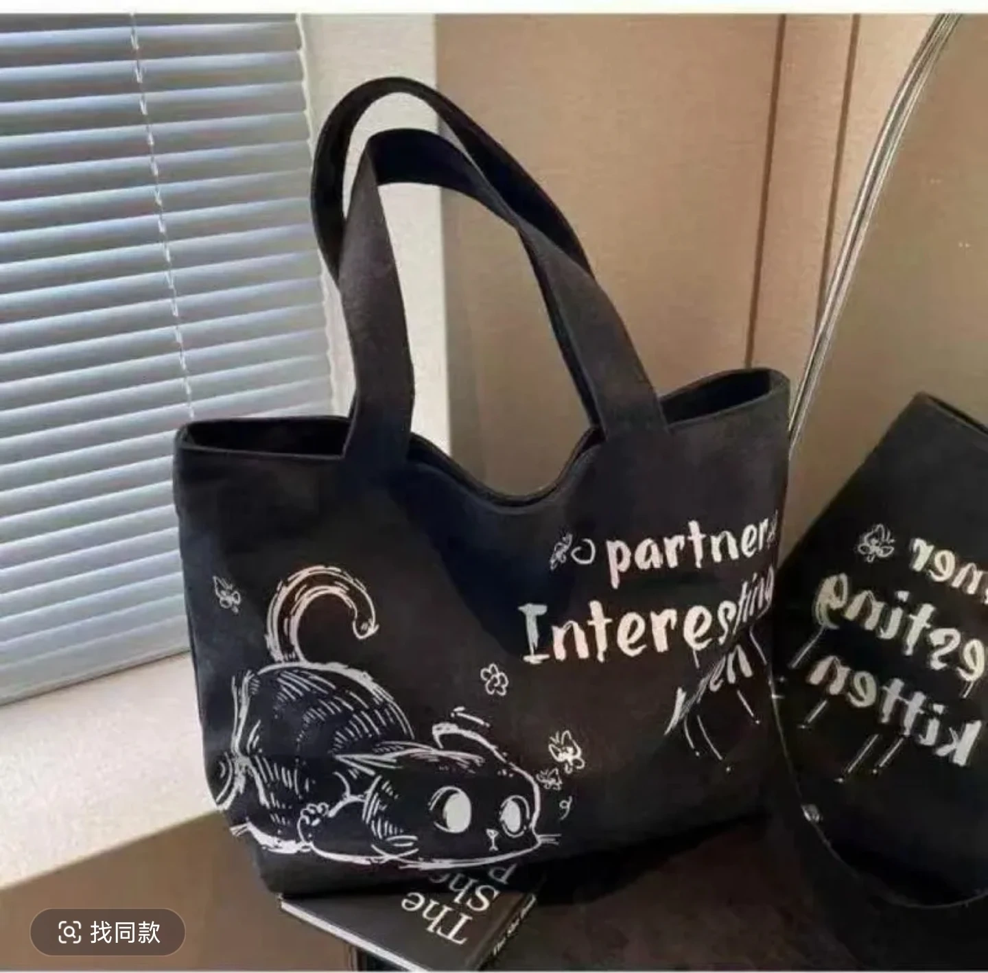 Canvas tote bag featuring a cute kitten graphic and the text 'partner Interesting kitten!'. This bag has a durable canvas construction and comfortable shoulder straps. It's a stylish choice for everyday use.