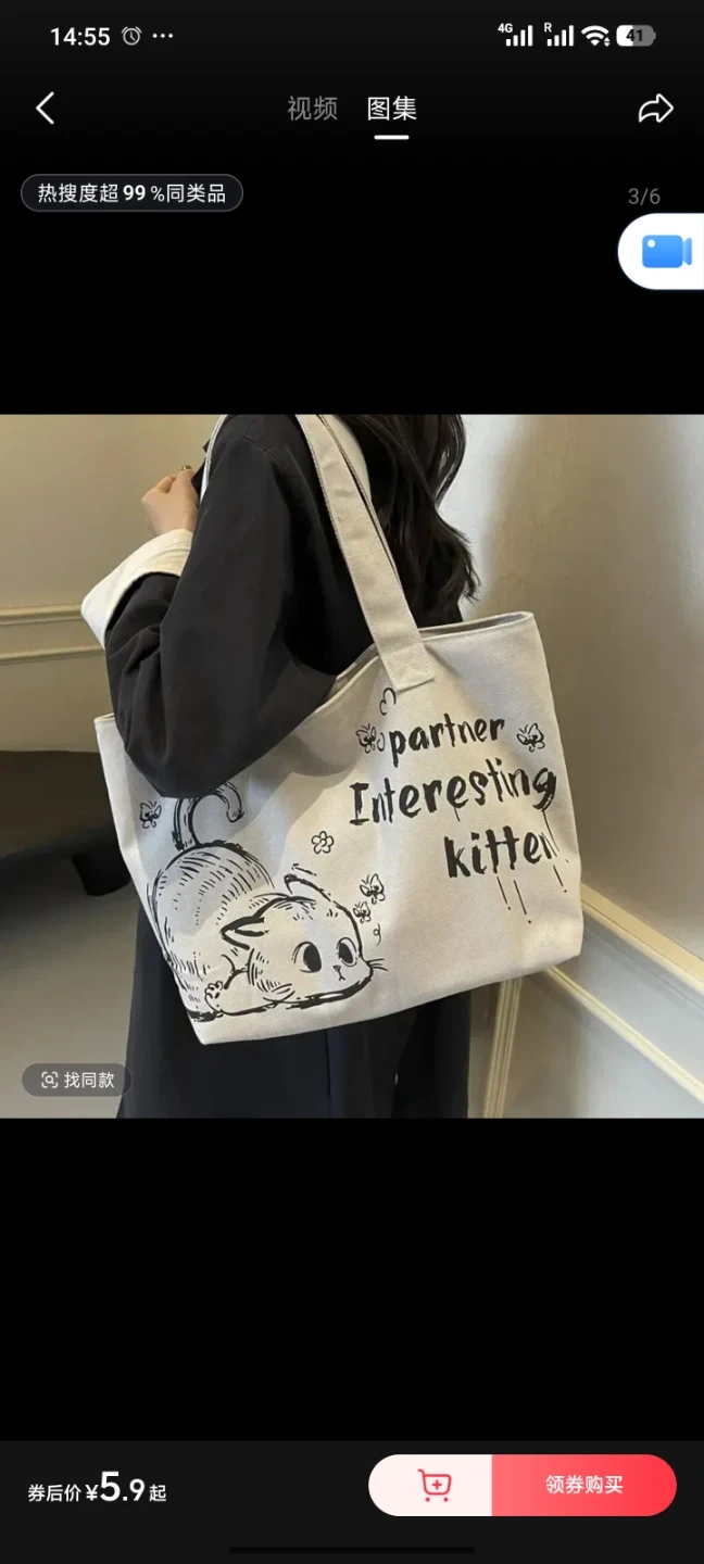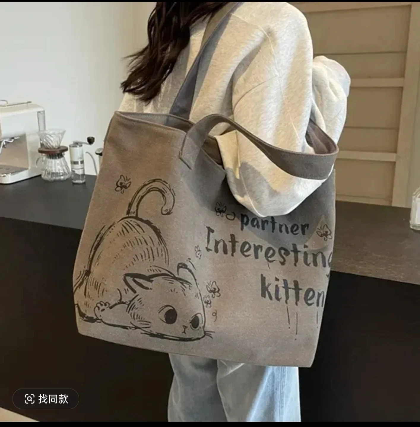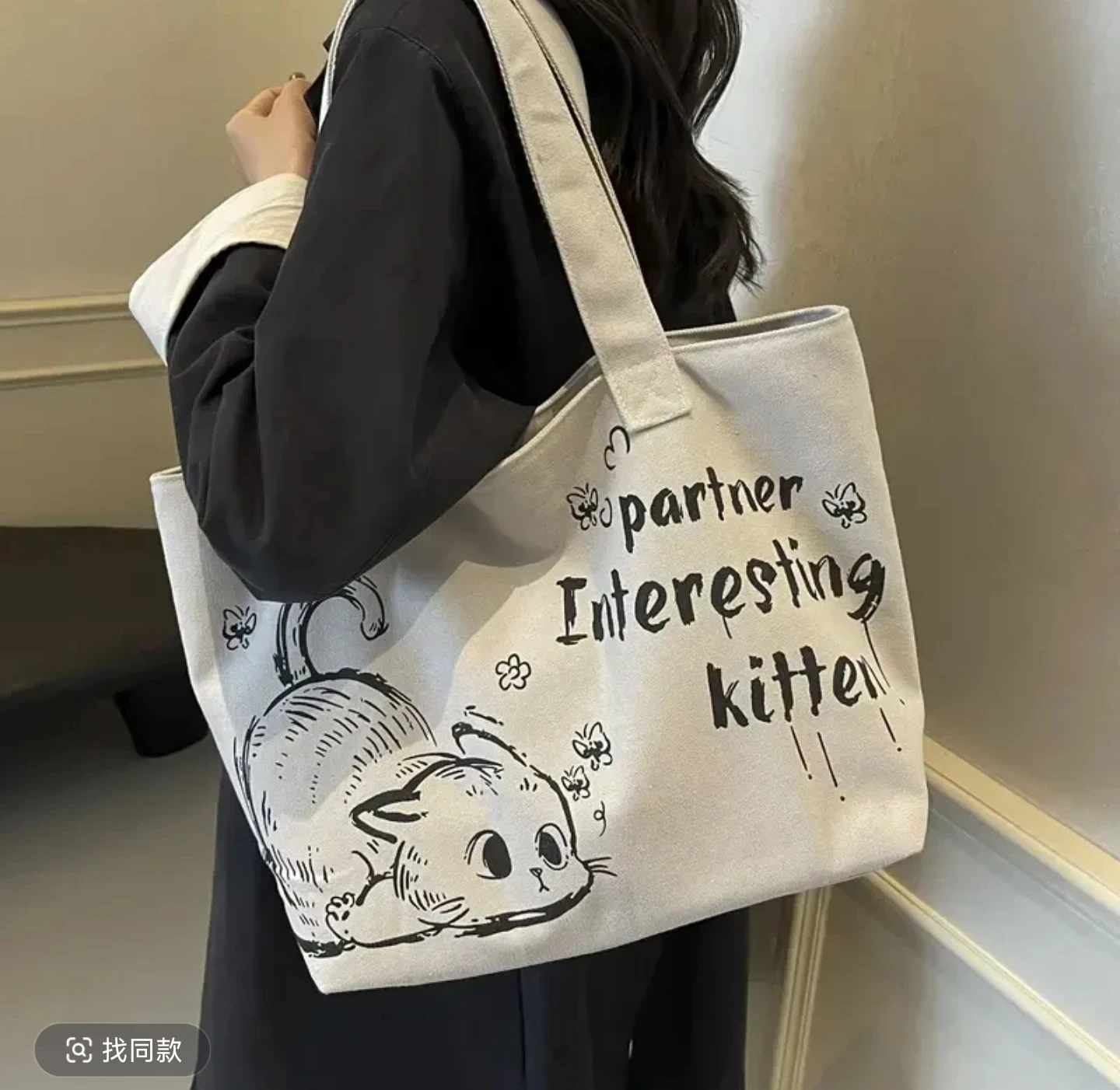 Canvas tote bag featuring a cute kitten graphic and the text 'partner Interesting kitten!'. This bag has a durable canvas construction and comfortable shoulder straps. It's a stylish choice for everyday use.