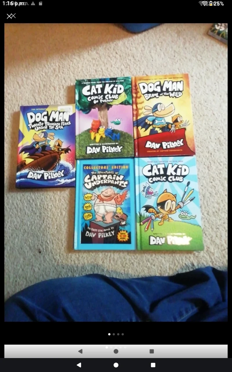 Collection of popular children's books including Diary of a Wimpy Kid, Cat Kid Comic Club, Dog Man, and Captain Underpants series. Also includes Scott Pilgrim graphic novels. Great for young readers and comic fans!
