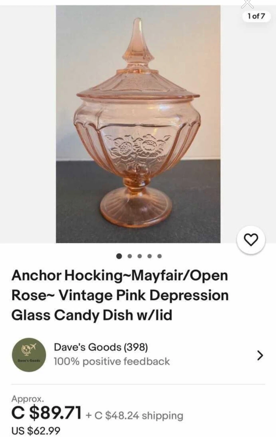 $56 Vintage Anchor Hocking Mayfair Pink depression glass candy dish with lid.