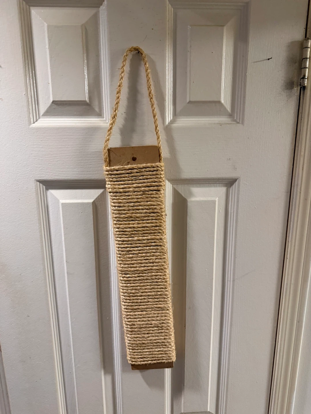 This hanging scratching post is made with durable rope and wood. It's perfect for cats to scratch and play on. Cats love to stretch and flex their claws on this.