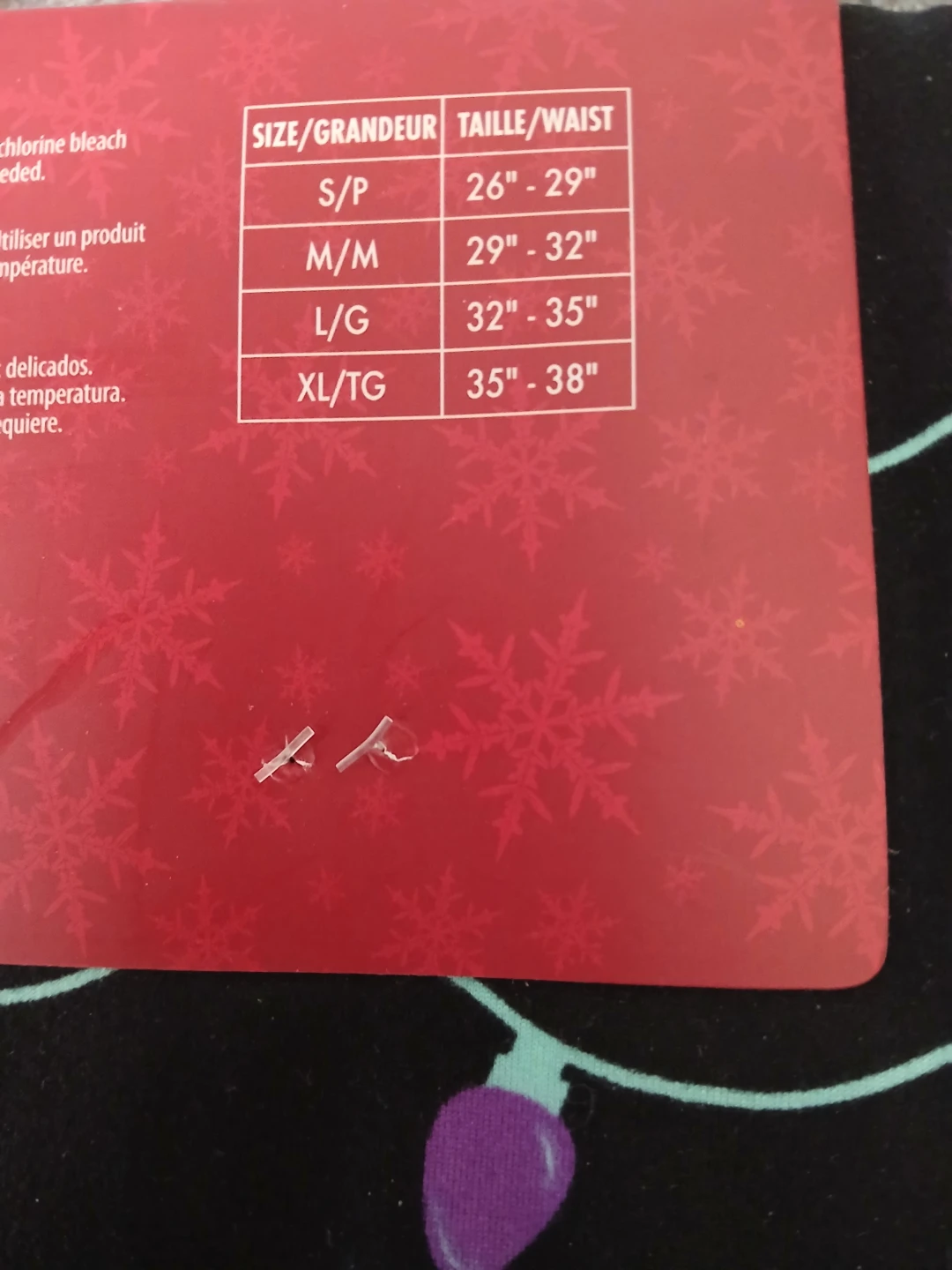 Polysuede lounge pants with a festive Christmas lights pattern. They feature a satin bow accent. Size L/G.