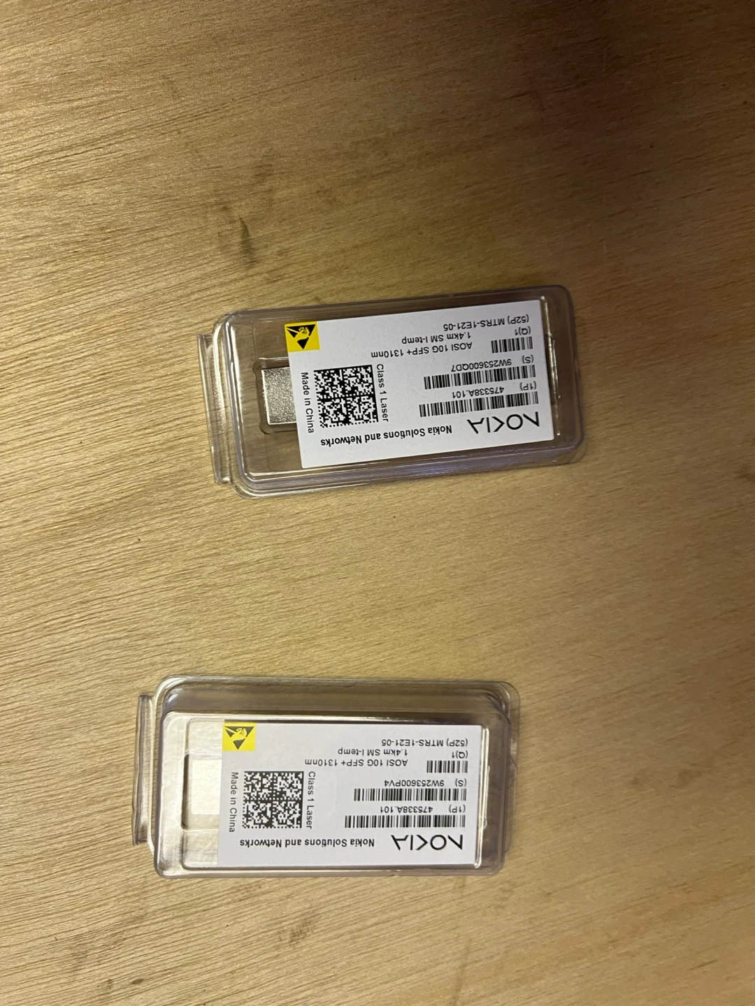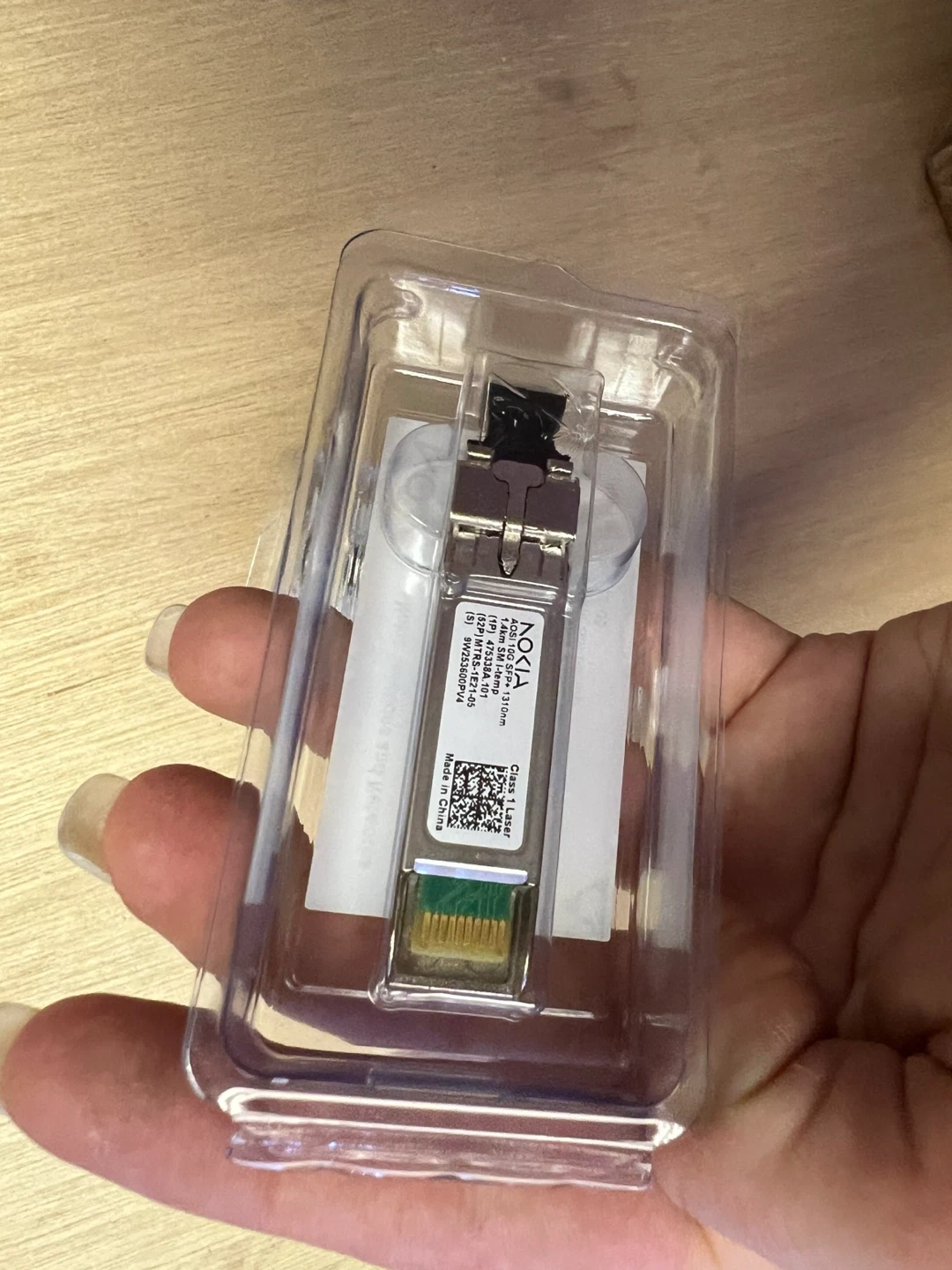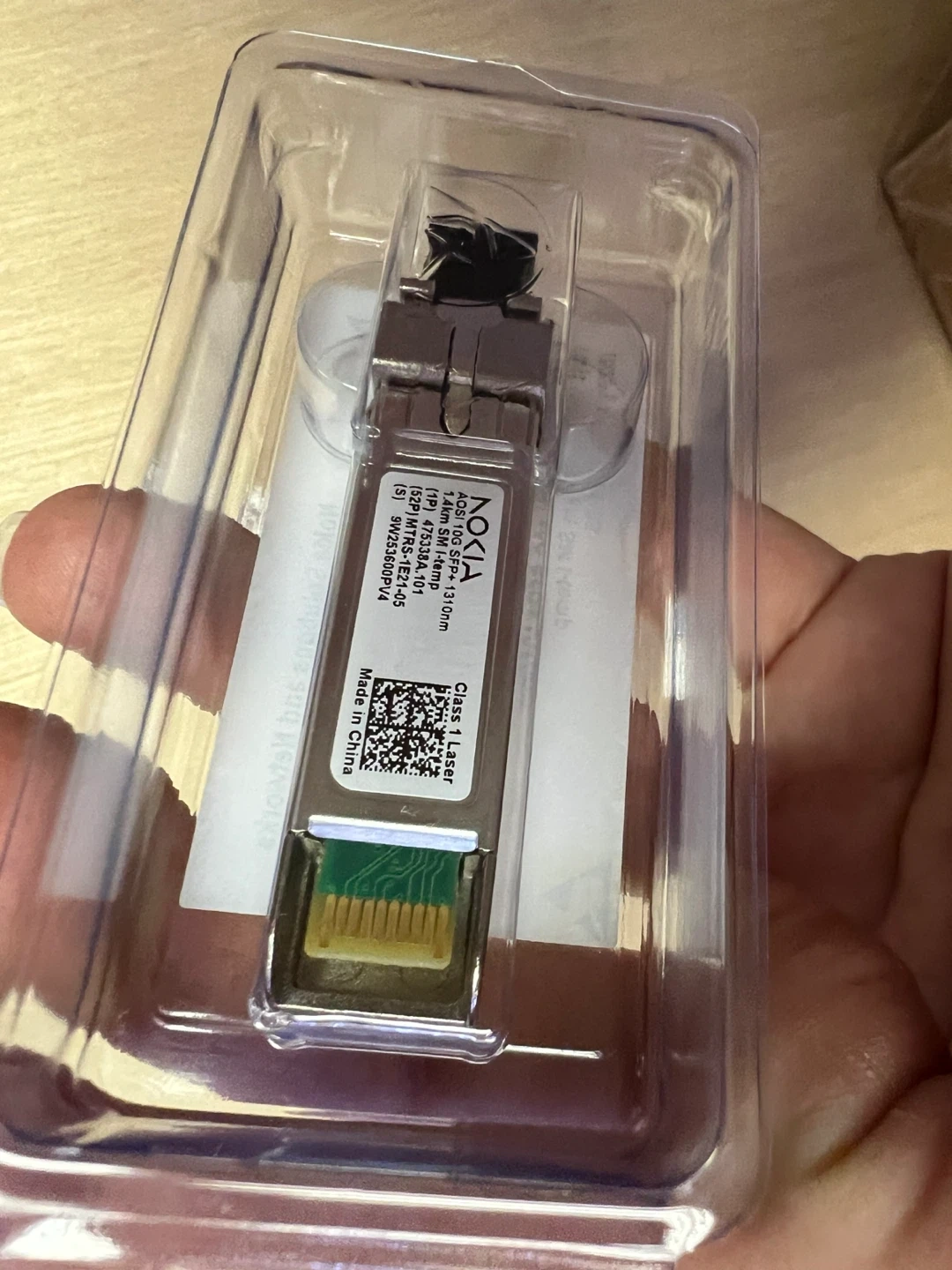 Buy & SellNokia SFP+ 10G 1310nm SM TransceiverNokia SFP+ 10G 1310nm SM Transceiver$20This is a new Nokia SFP+ transceiver module. It's a 10G 1310nm single-mode SFP+ for optical networking. Includes original packaging.ConditionNewBrandNokiaWHERE TO MEETCheck LocationView MapSELLERverifiedKrisRichmond Hill E700 reviews0 chats·0 favorites·6 viewsSEND CHAT TO SELLERHi Kris! I’m interested in your listing.Hi Kris! I’m interested in your listing.Get the Karrot app to chatSign In to chat