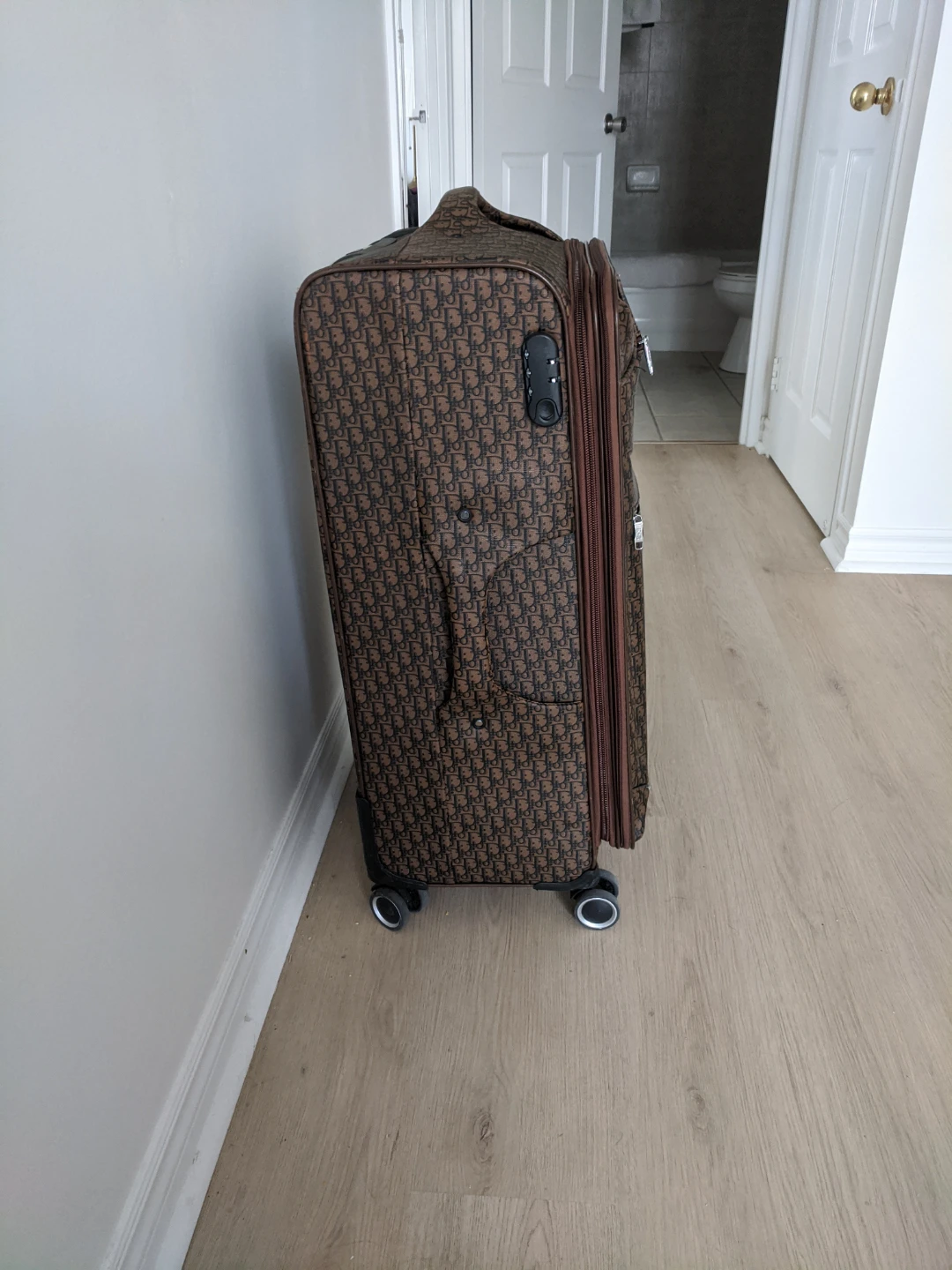 Selling a Christian Dior suitcase with the iconic Oblique pattern! It's a stylish and functional piece for your travels. The suitcase is used but okay and ready for its next adventure.there is a little tear, l fixed it already(see last picture). Size :17.5"x12"x29.5"(height,including wheels) pick up at 195 Merton Street Toronto or pick up at subway station Davisvill. And I can deliver it to your house but you need to pay me another $3. Thanks.