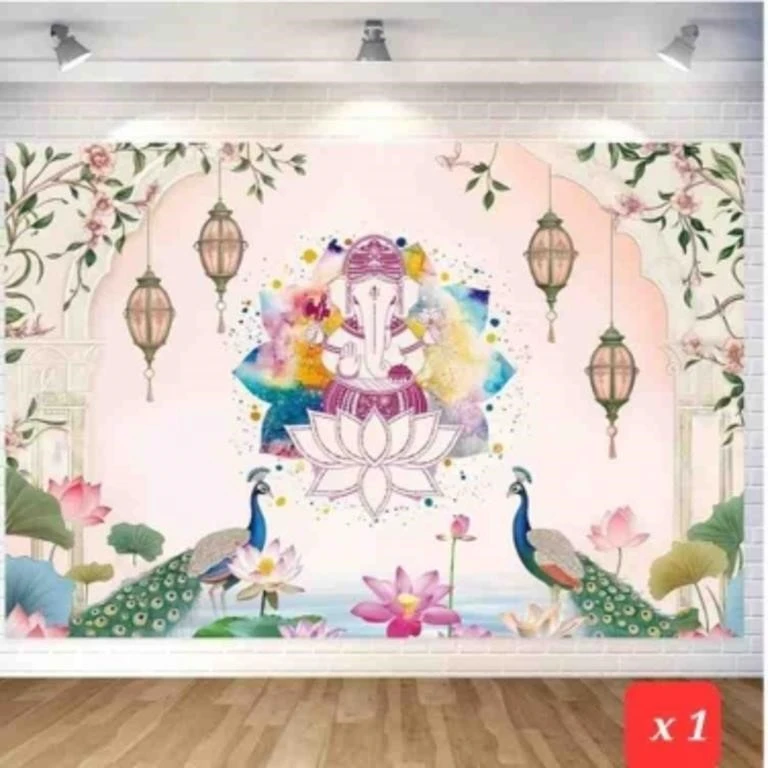 Ganesh Backdrop Banner Green Yellow Floral Festival Photography Background Hindu Ganesha Decoration Mandala God Celebration Religious Ceremony Party Supplies Photo Booth Props 71x43 Inch