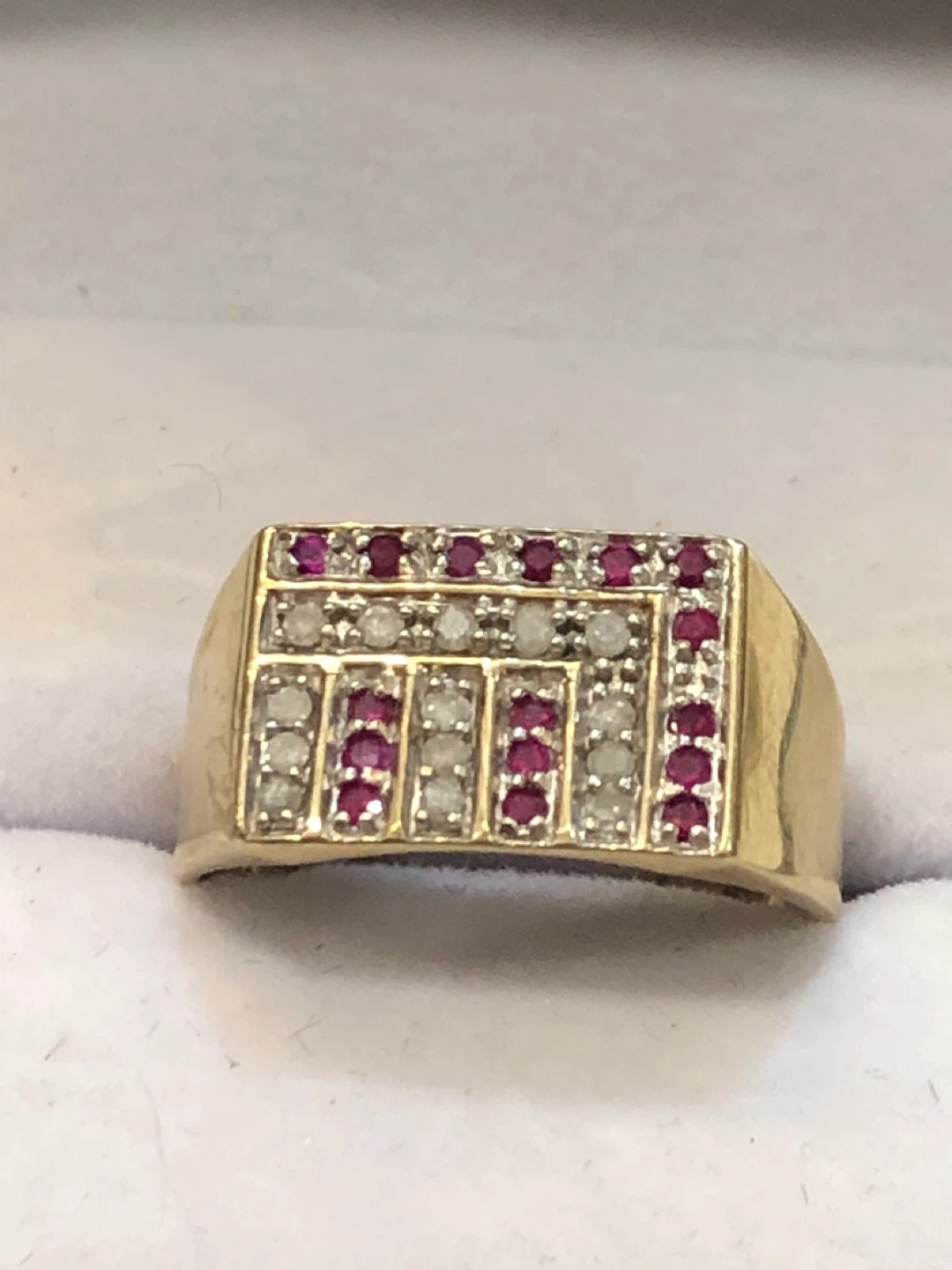 Selling a beautiful gold ring featuring ruby and diamond accents. It weighs approximately 3.68 grams. A stunning piece to add to your collection!