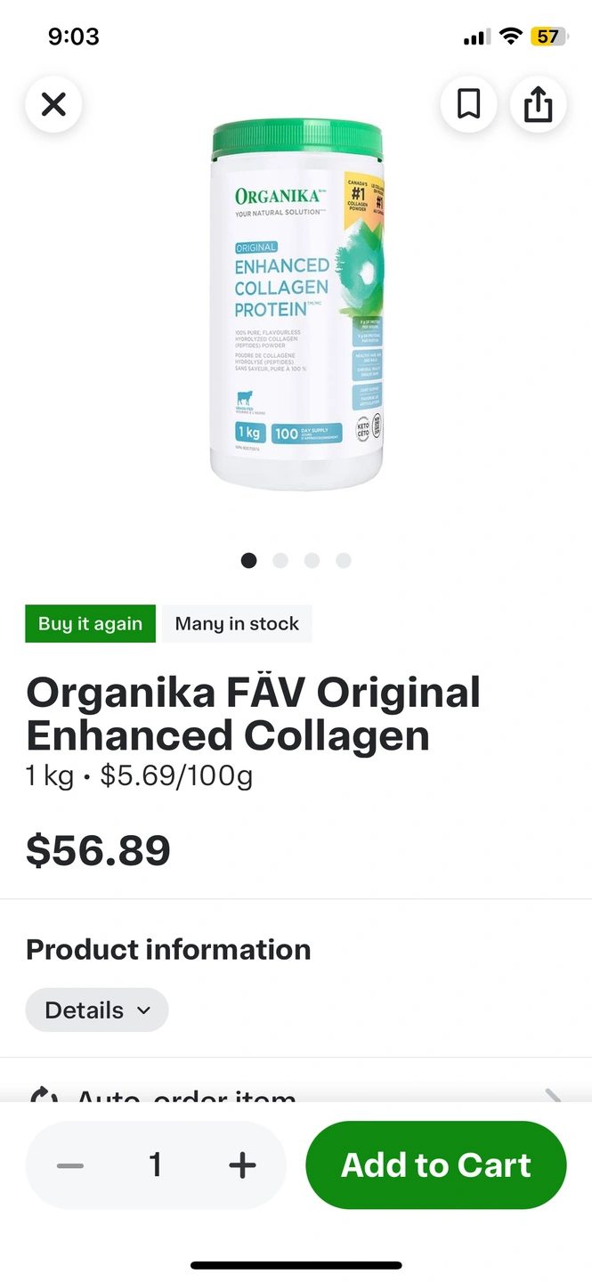 Organika Enhanced Collagen Protein Powder, 100% pure flavourless hydrolysis protein, 1kg