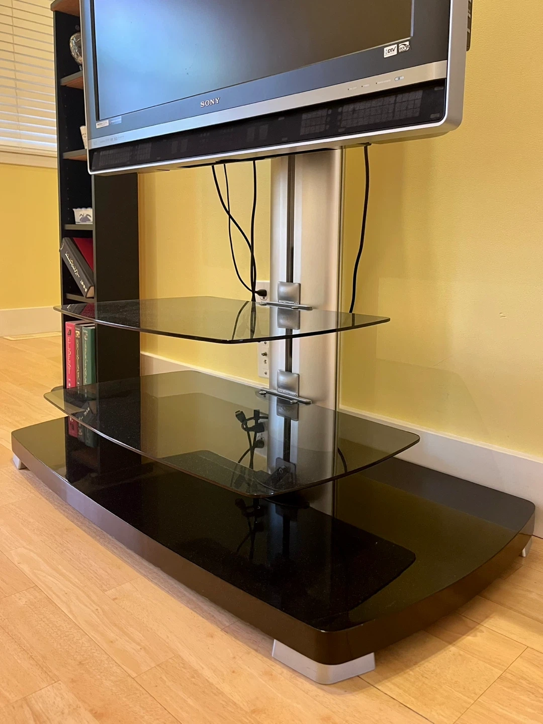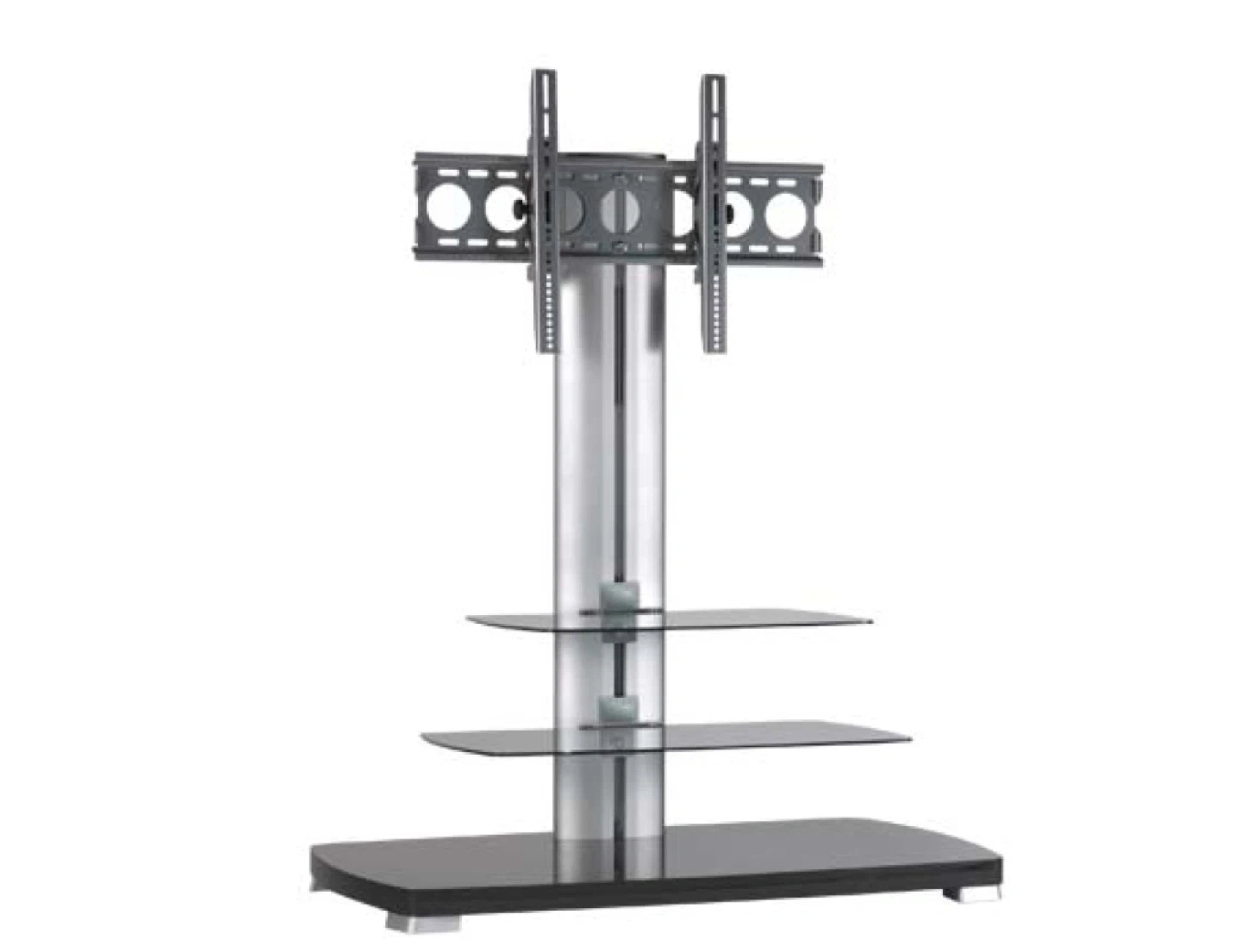 A SANUS System TV stand with mount (black and silver finish) - perfect alternative to wall mounting.