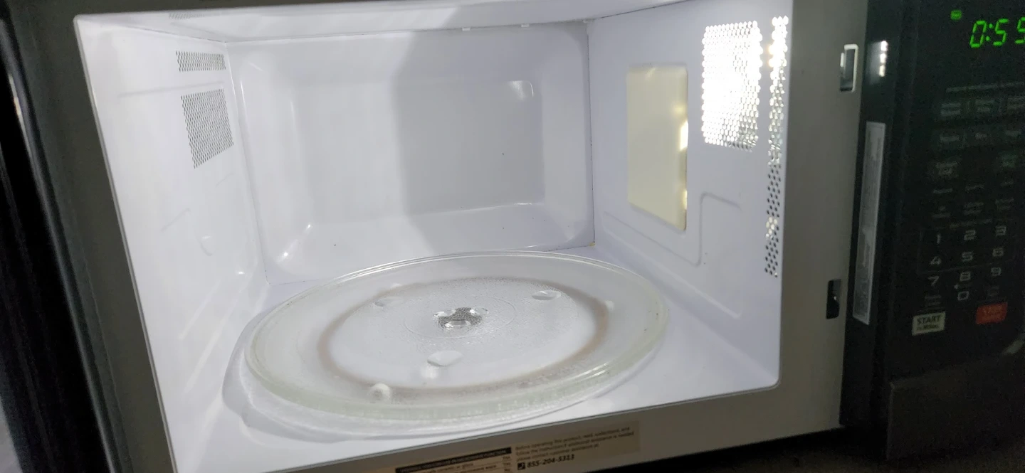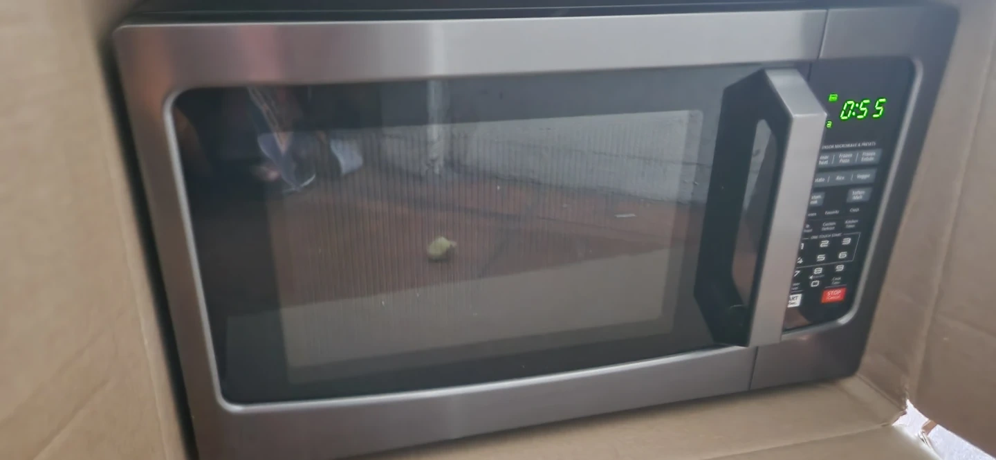 Almost new.This is a Toshiba microwave oven. It has a digital display and a turntable. Includes original box and packaging.1550w.cash only