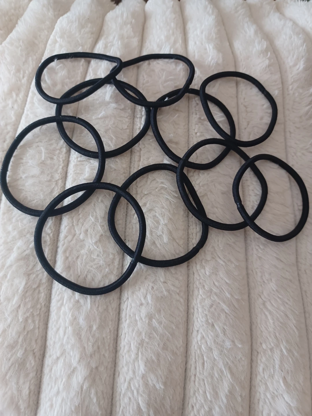 Set of 10 black hair elastics. Simple, stretchy design for everyday wear. Suitable for various hair types. No metal to catch hair. NEW NEVER USED. 10 for 1.50. Have several bundles of 10 if want more