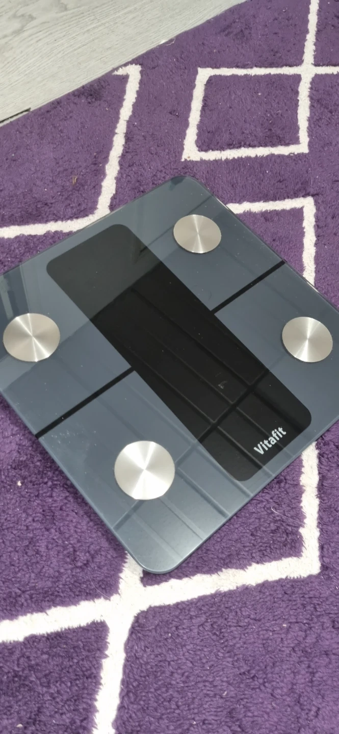 Vitafit smart digital weight scale with body composition analysis. Tracks BMI, body fat, and muscle. Maximum weight capacity is 400lb.