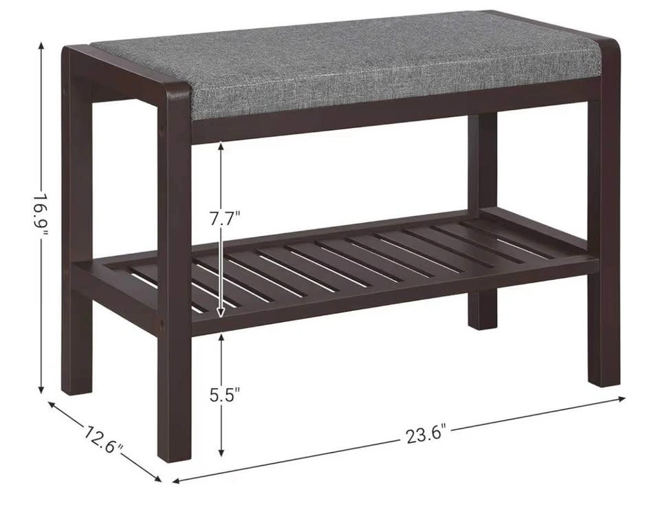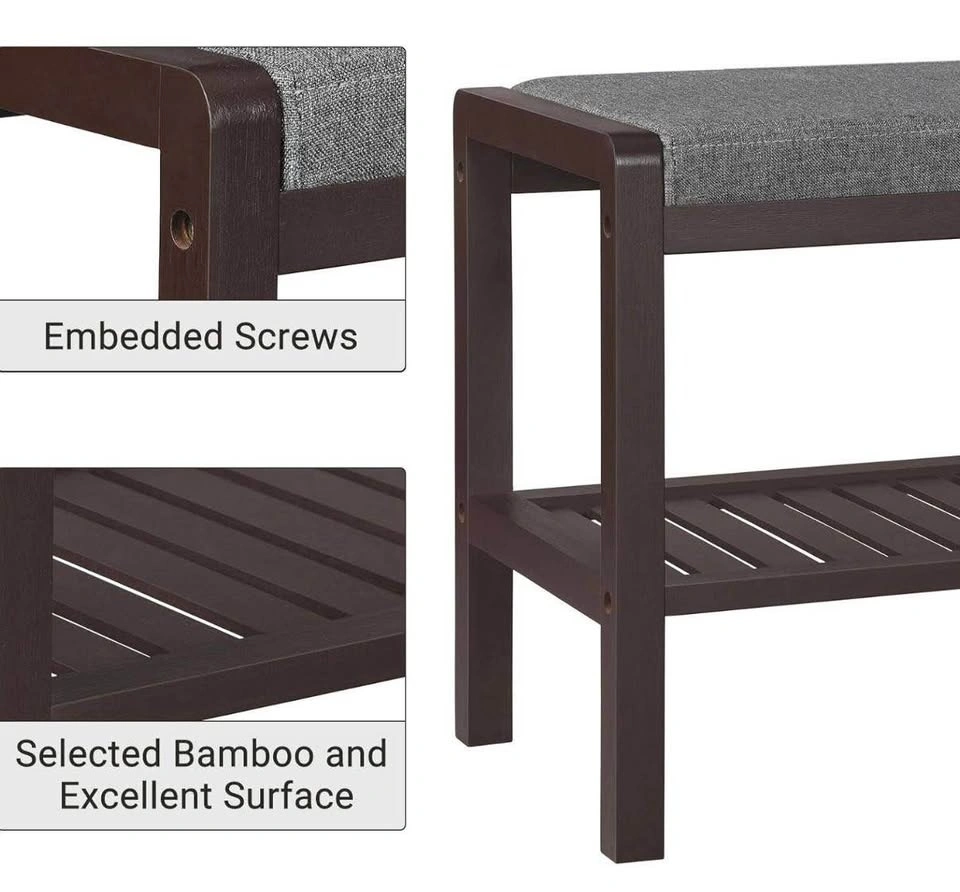 Stylish and practical shoe bench made of natural bamboo with a soft padded cushion. Perfect for an entryway, hallway, bedroom, or mudroom. Combines comfortable seating with shoe storage to keep your space neat and organized.