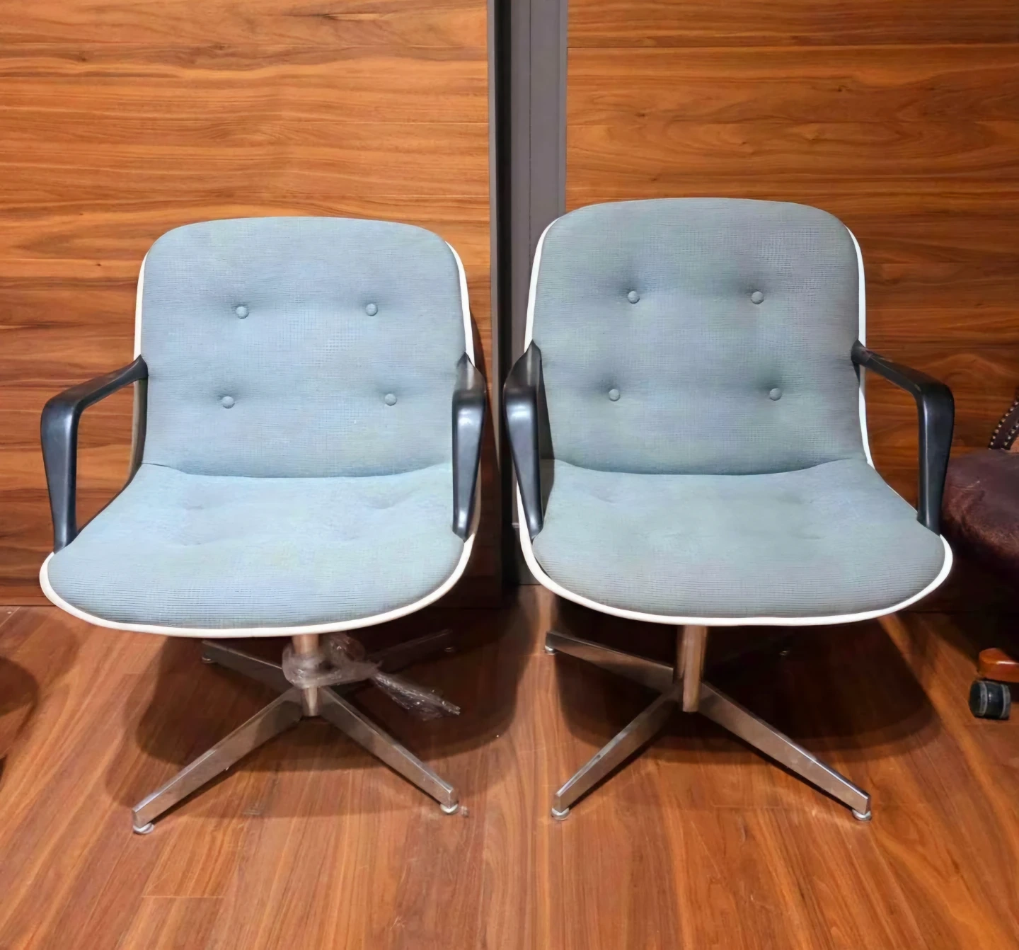 Pair Of Steelcase Tufted Accent Chairs With Fiberglass Shell