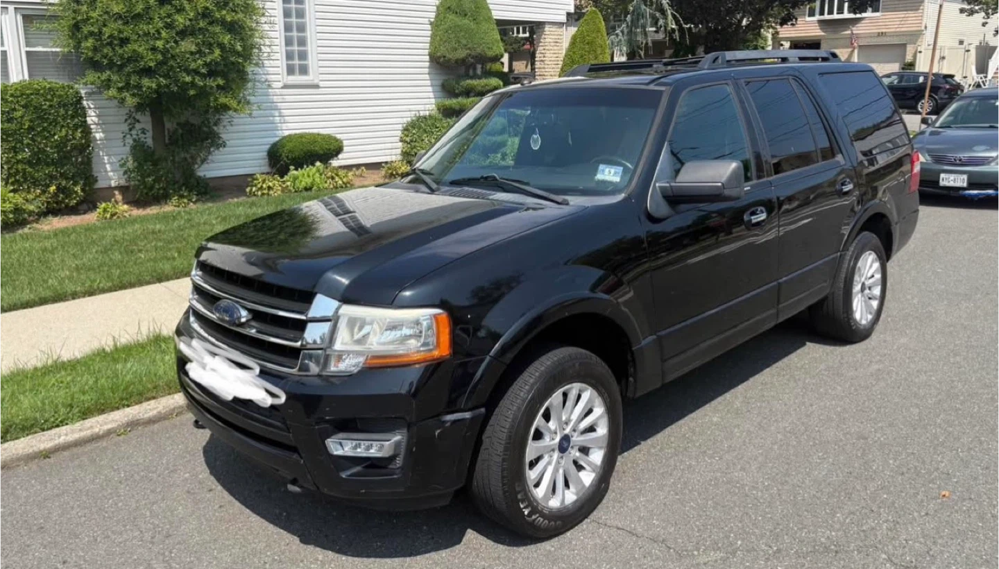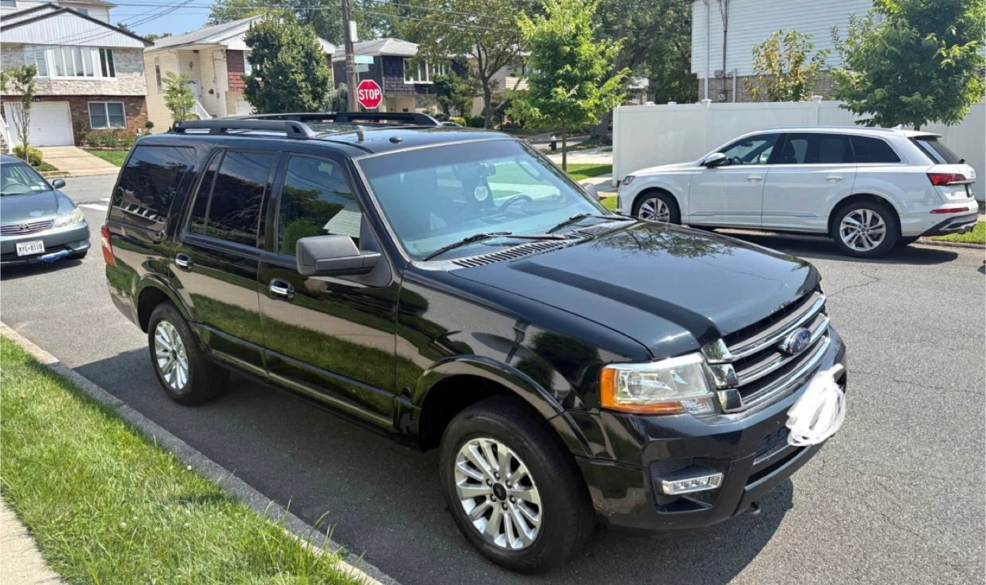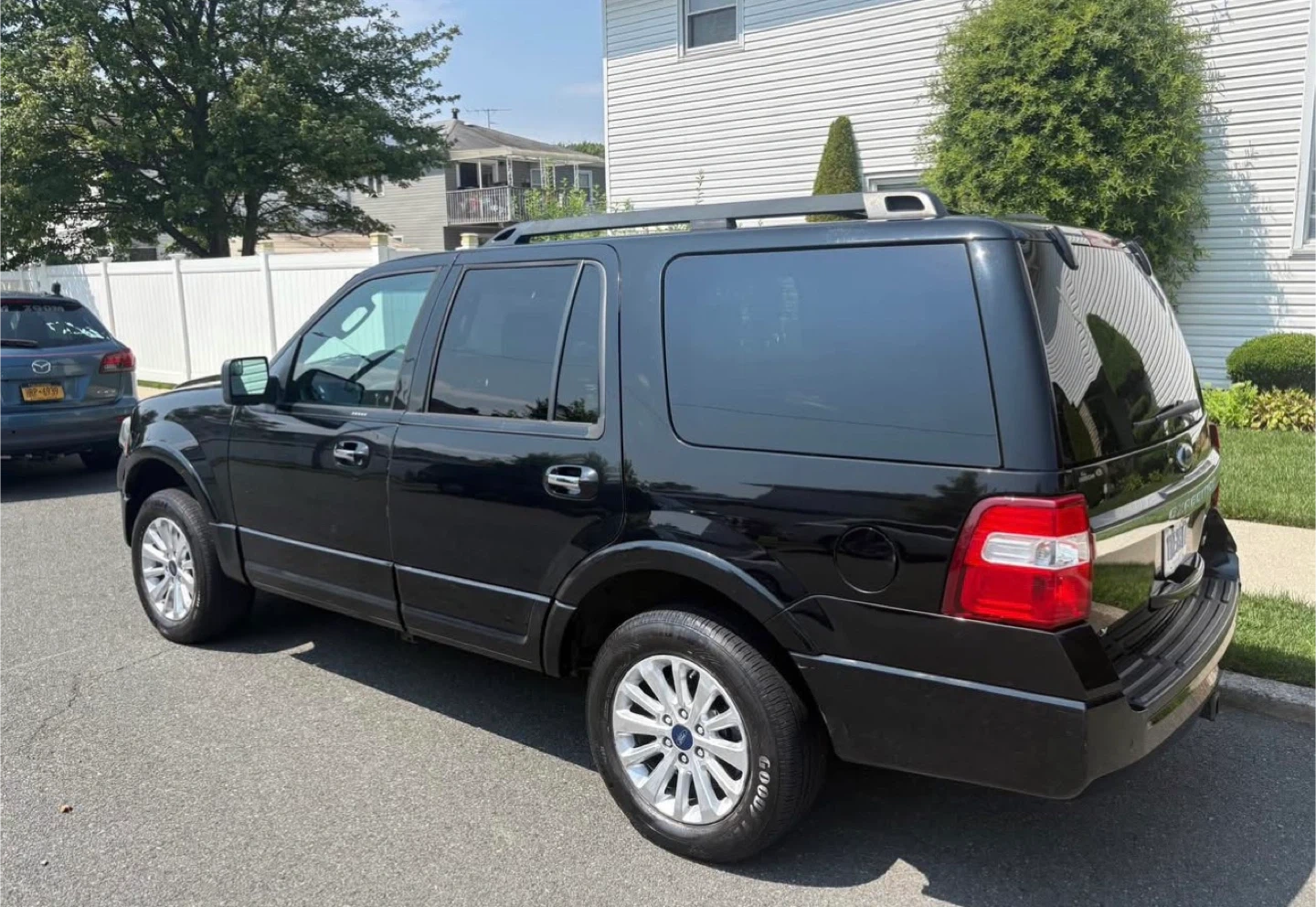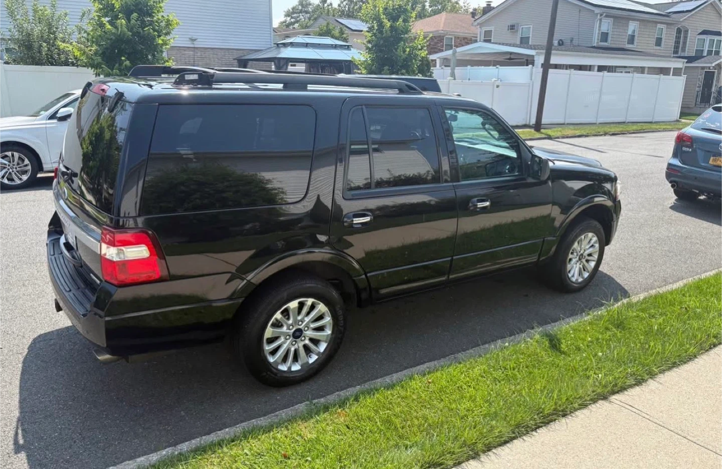 This is a black Ford Expedition SUV. It has a spacious interior and roof rails for extra storage. A reliable vehicle for families or hauling.