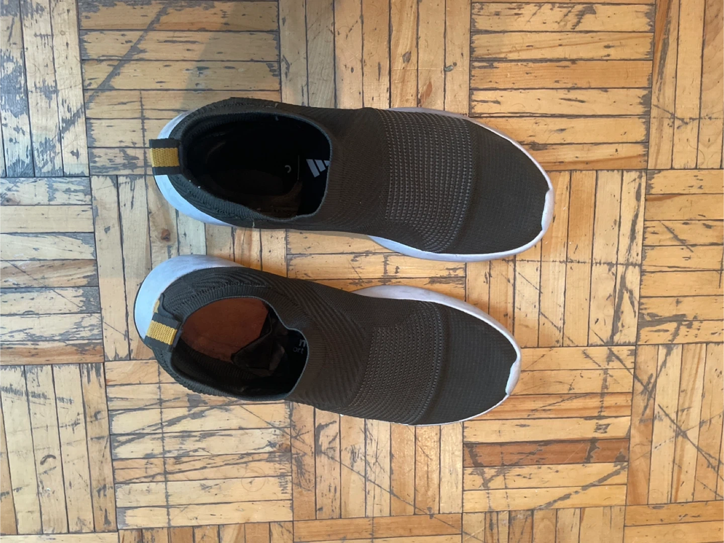 These Adidas slip-on shoes feature a knit upper for a breathable fit. They have Cloudfoam cushioning for comfort. Great for casual wear and light activity.
