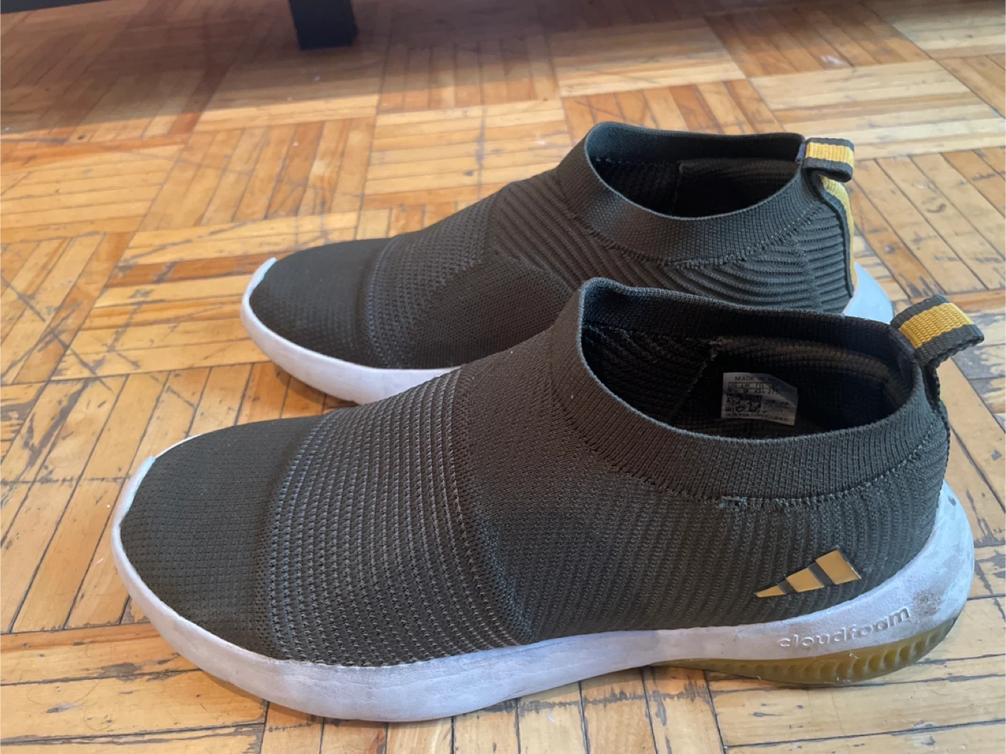These Adidas slip-on shoes feature a knit upper for a breathable fit. They have Cloudfoam cushioning for comfort. Great for casual wear and light activity.