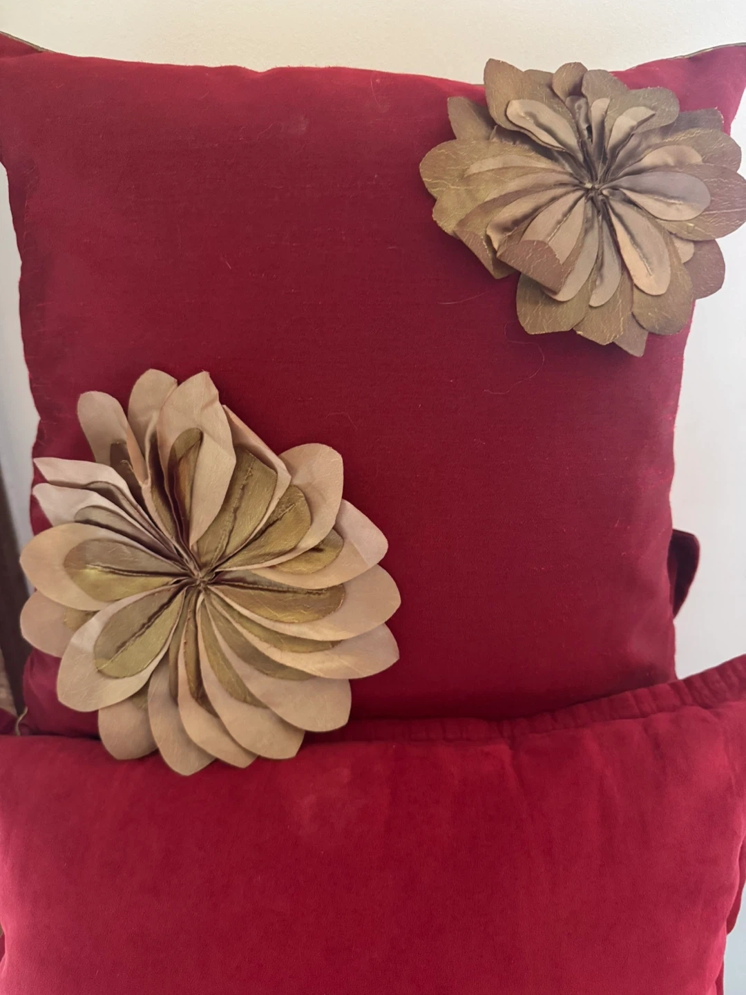 Red Decorative Pillows with Floral Embellishments