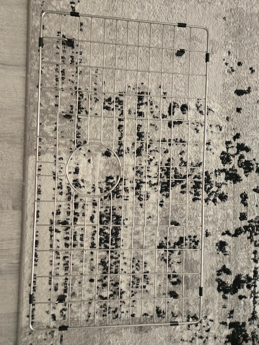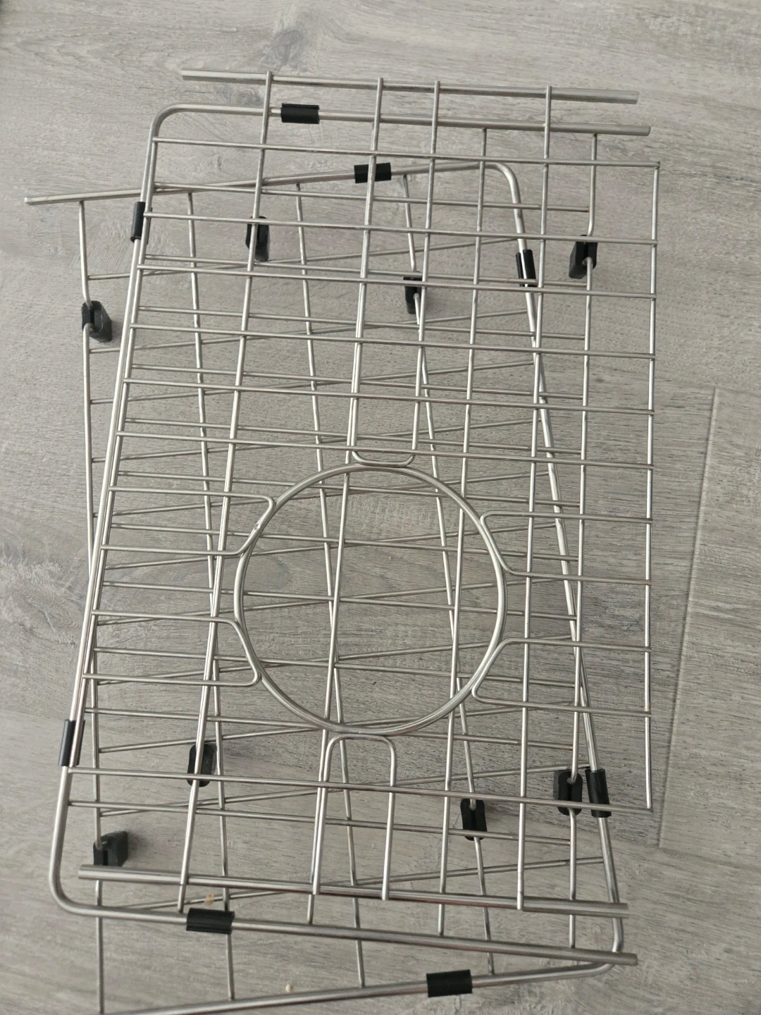This is a stainless steel grid, perfect for use in your kitchen sink. It's great for protecting your sink basin from scratches and can also be used for drying dishes or as a trivet. Features rubber feet for stability and to prevent scratching.
