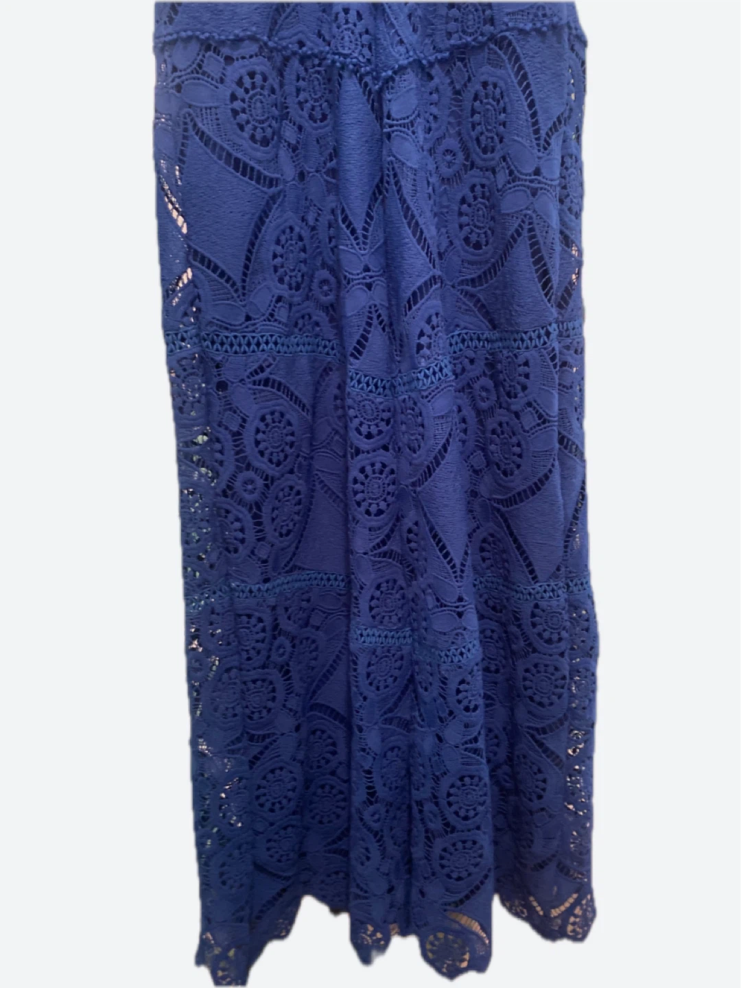 Beautiful intricate crotchet lace overlay with full lining. Perfect for a vacation and any special event!