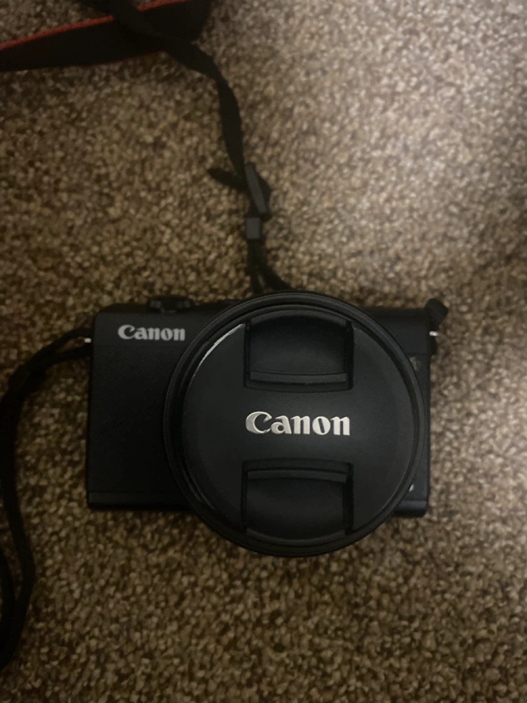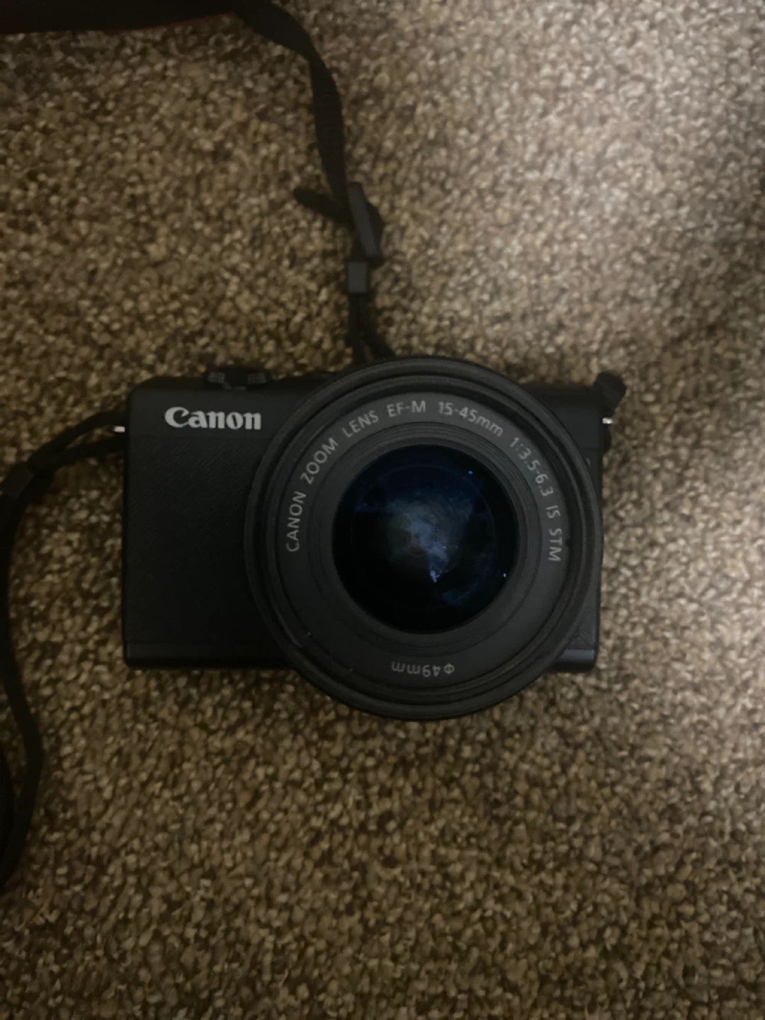 This is a black Canon EOS M200 digital camera. It includes the Canon EF-M 15-45mm zoom lens. This camera is great for capturing photos and videos on the go! No Charger unfortunately and it is dead but still working!