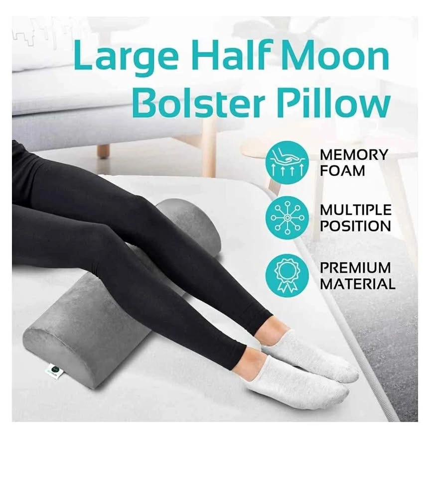 AllSett Health Large Half Moon Bolster Pillow for Legs, Knees, Lower Back and Head, Lumbar Support Pillow for Bed, Sleeping | Semi Roll for Ankle and Foot Comfort - Machine Washable Cover, Grey