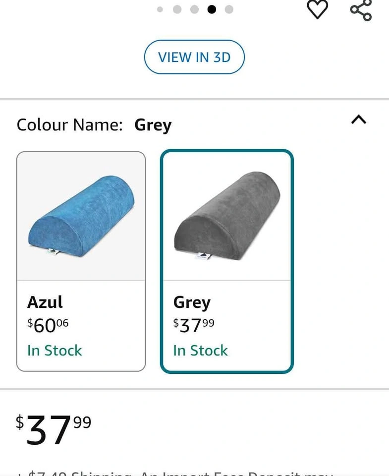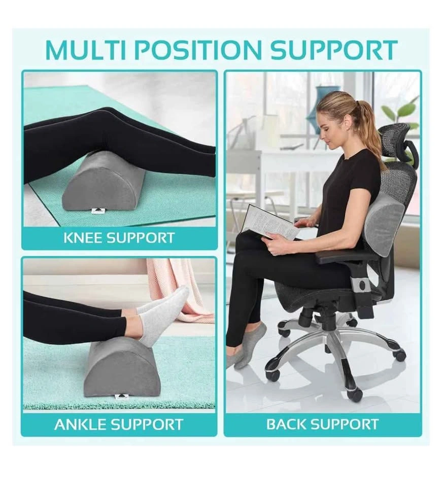 AllSett Health Large Half Moon Bolster Pillow for Legs, Knees, Lower Back and Head, Lumbar Support Pillow for Bed, Sleeping | Semi Roll for Ankle and Foot Comfort - Machine Washable Cover, Grey
