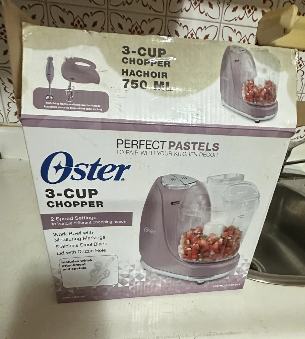 Selling a brand new Oster 3-Cup Chopper in the Perfect Pastels colour! It comes with: