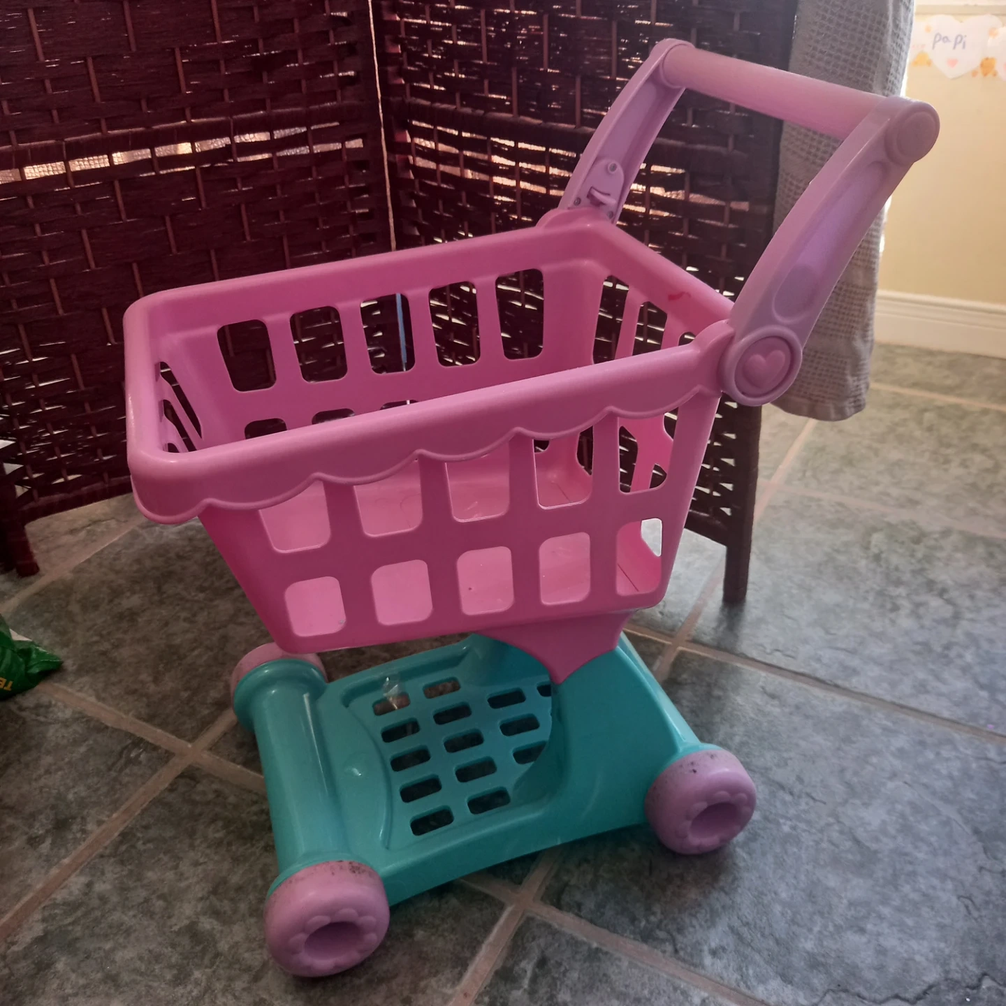 Pink and Teal Kids Toy Shopping Cart