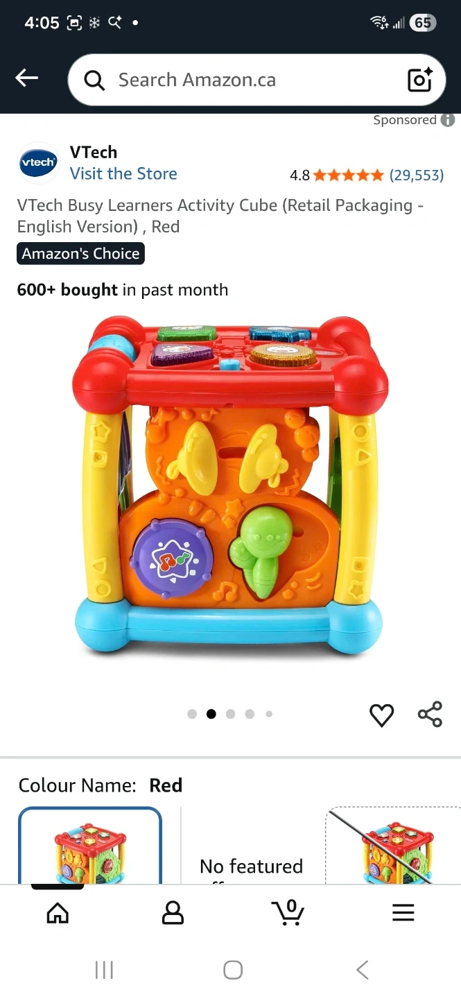 This VTech Busy Learners Activity Cube is designed for little ones to explore and learn. It's the English version, coming in a bright red colour. It's great for developing fine motor skills and cognitive abilities!