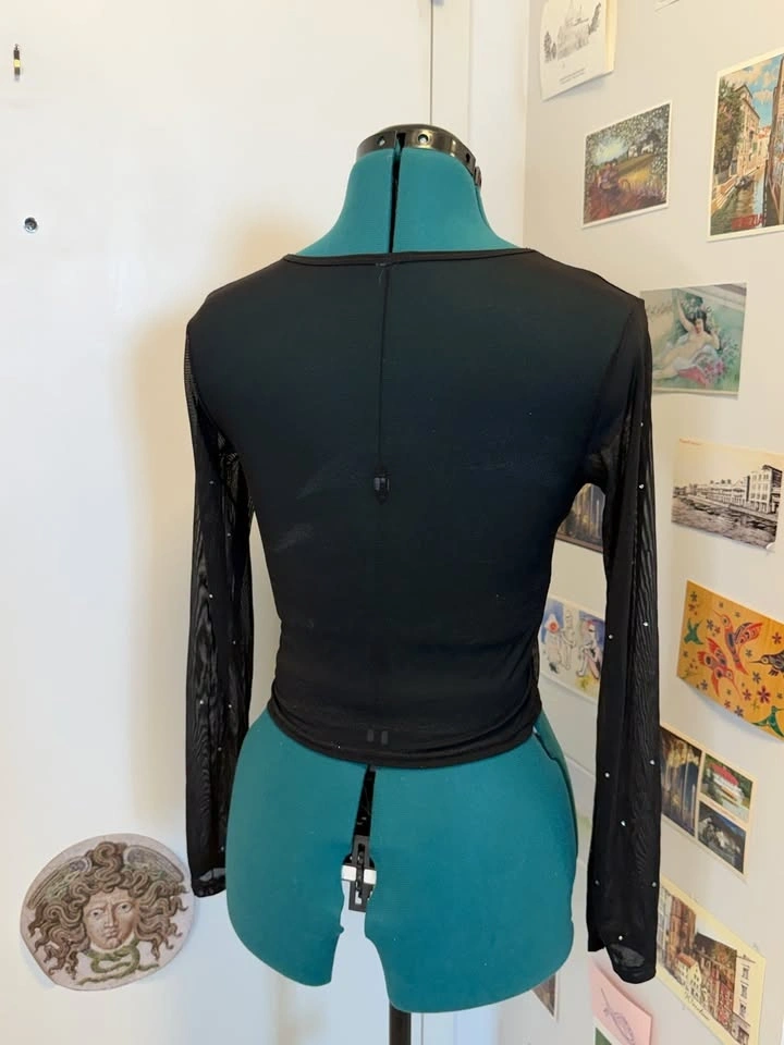 Black mesh see-through long sleeve shirt with gems. From Spirit Halloween. Size L. Only worn once, in great condition. Closet clean out! Check out my other listings!