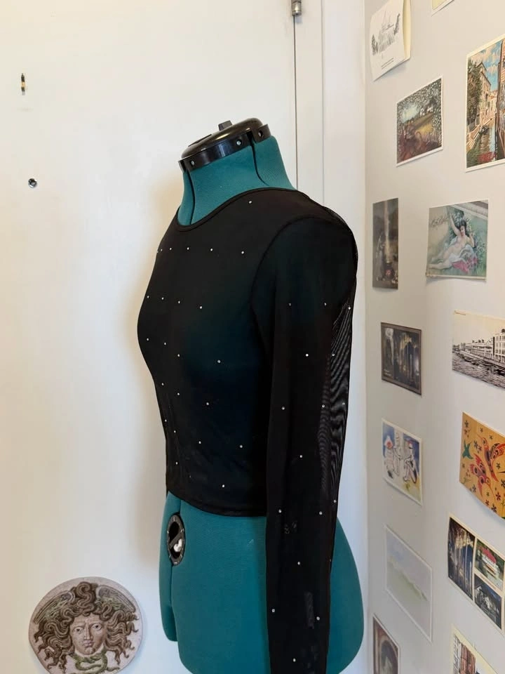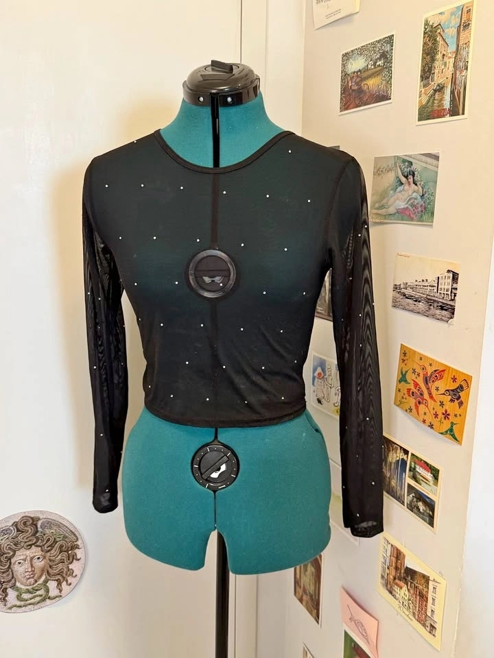 Black mesh see-through long sleeve shirt with gems. From Spirit Halloween. Size L. Only worn once, in great condition. Closet clean out! Check out my other listings!