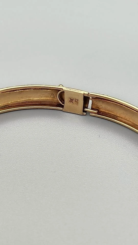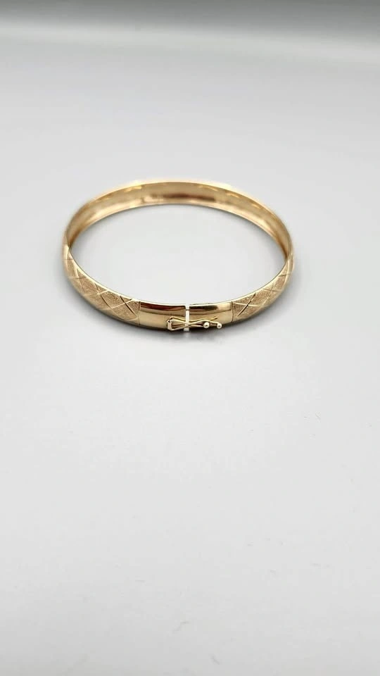Gorgeous 9k solid gold bangle with clasp to open or close. Perfect for those who like to easily put on and remove.