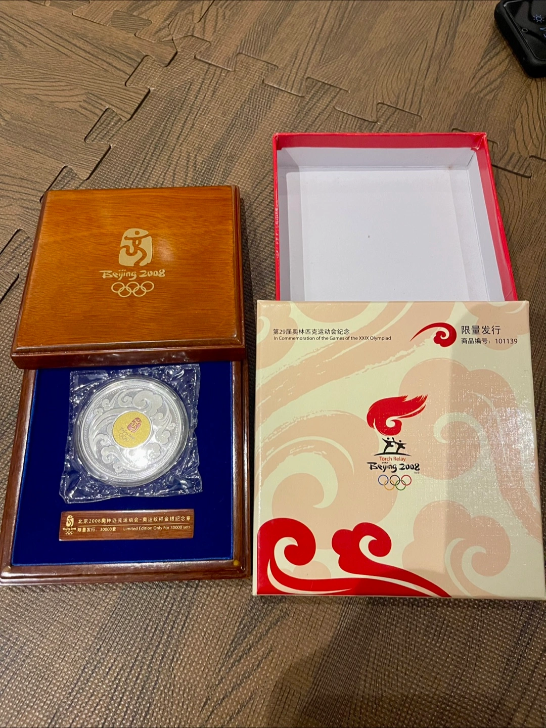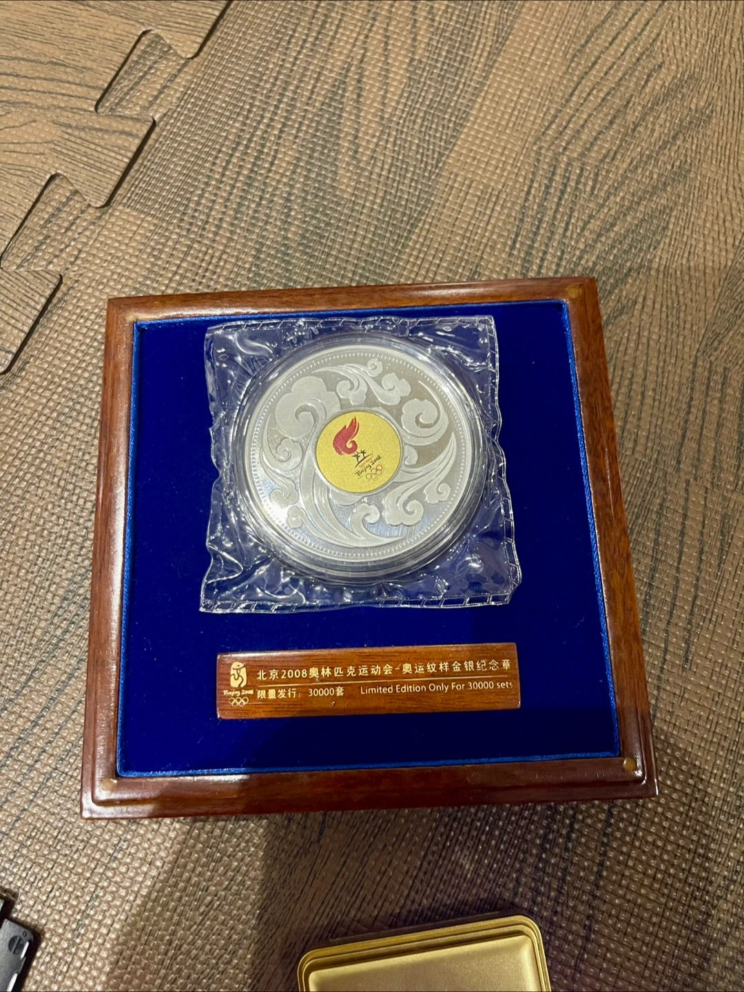 Selling a Beijing 2008 Olympics commemorative silver coin. It's in great condition and comes with the original box. A limited edition piece, only 30000 sets were made!