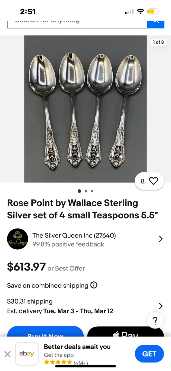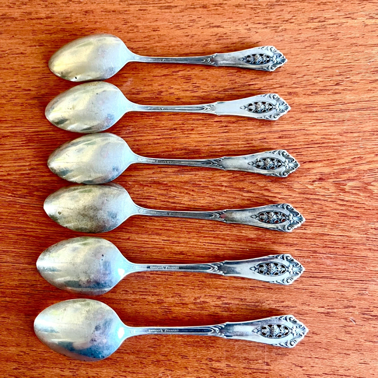 6 Vintage Wallace RosePoint Sterling Silver Teaspoons