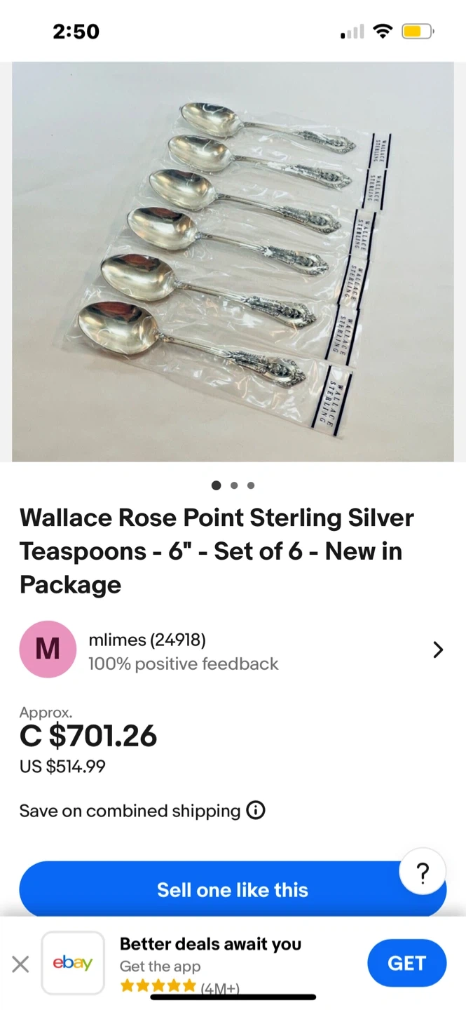 6 Vintage Wallace RosePoint Sterling Silver Teaspoons