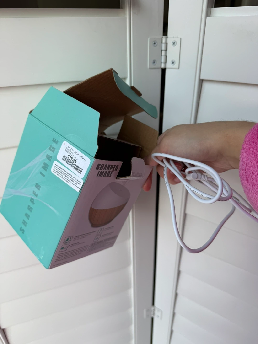This portable misting diffuser from Sharper Image uses ultrasonic technology. It's designed for aromatherapy and features automatic safety shut-off. Includes USB power cord. 50 mL (1.7 fl oz) capacity.