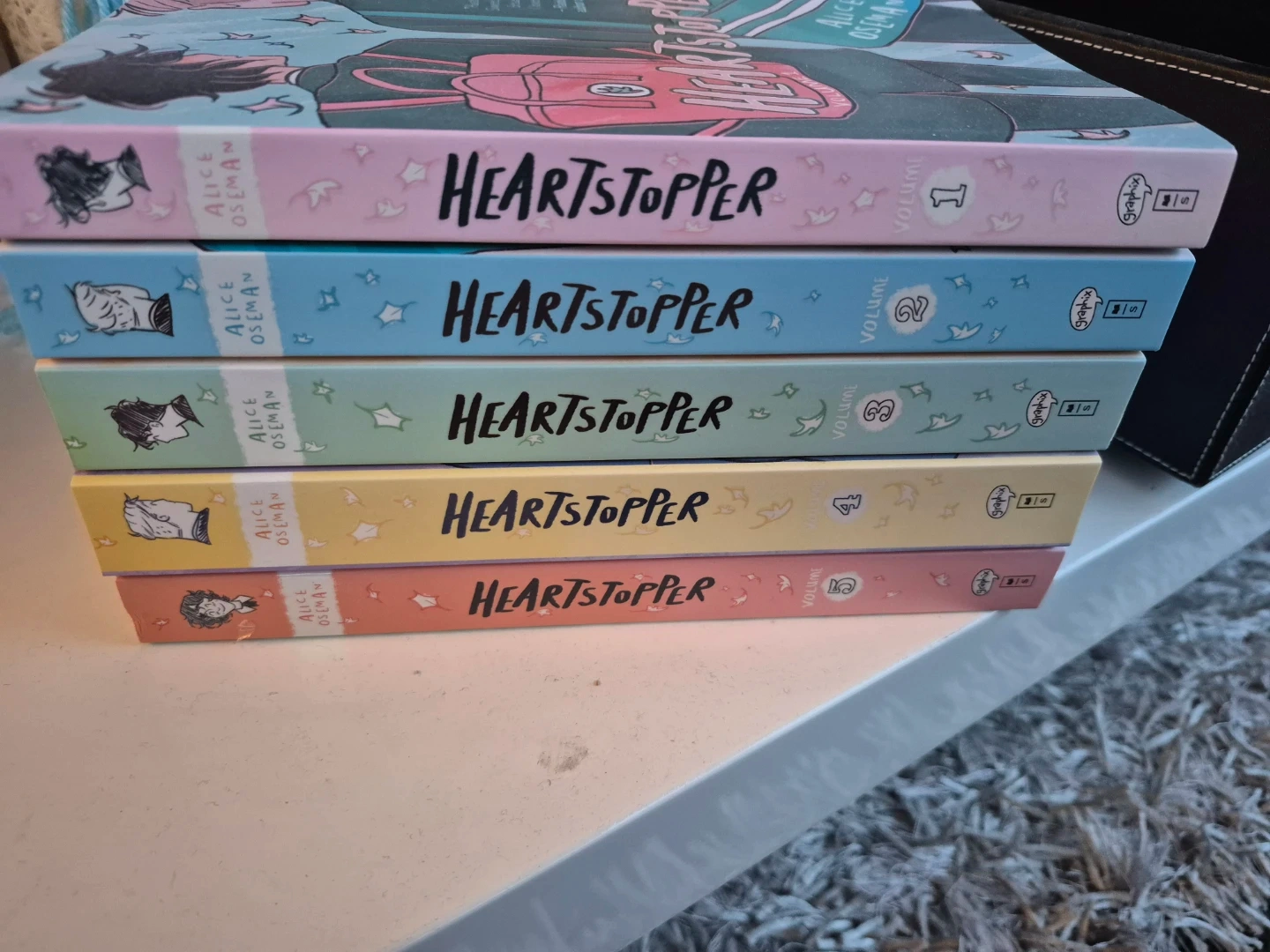 Selling the complete Heartstopper book series, volumes 1 through 5, written by Alice Oseman. Great for fans of the series or anyone looking for a heartwarming read!