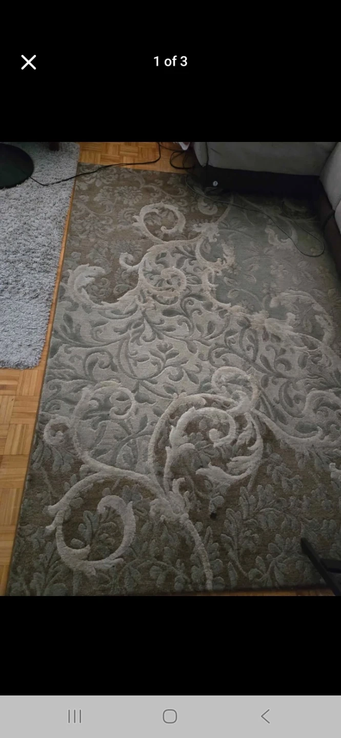 This area rug features an intricate scrollwork pattern. It has a plush texture and a durable construction. This rug would add a touch of elegance to any room!