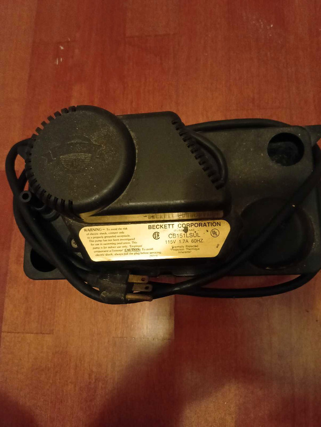 This is a Beckett CB151LSUL 115V 1.7A 60Hz pump, perfect for various water feature applications. It's in used condition.