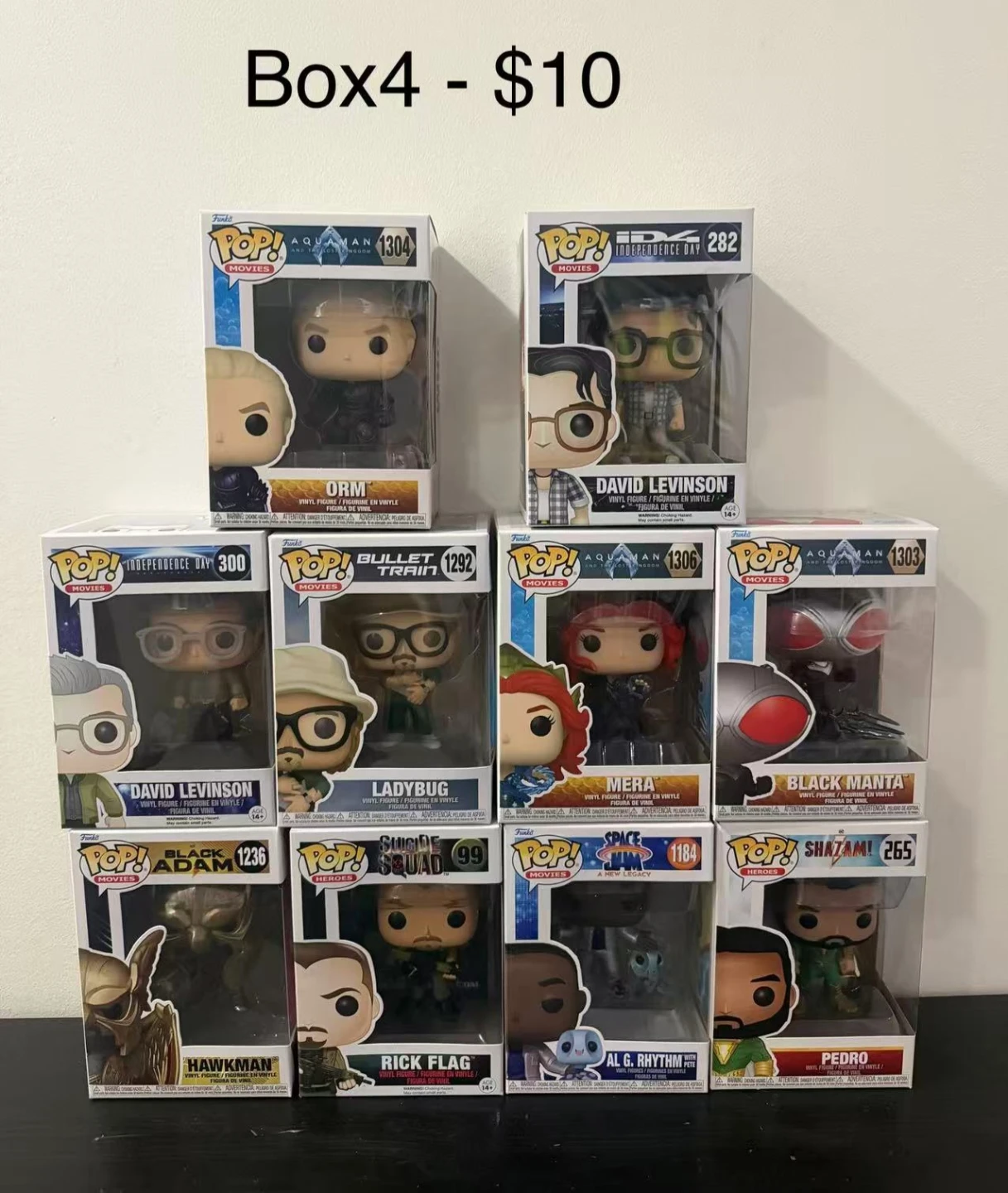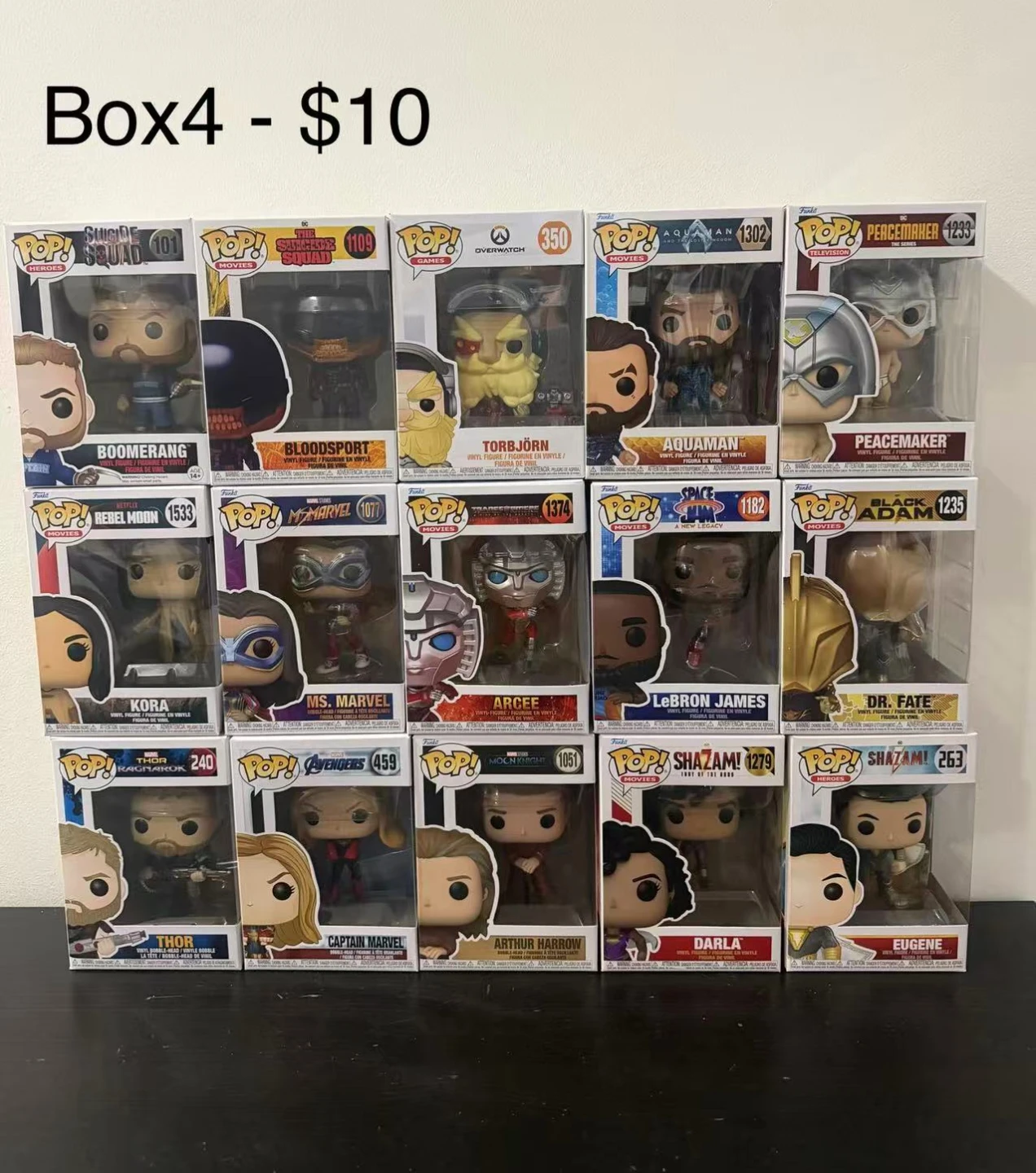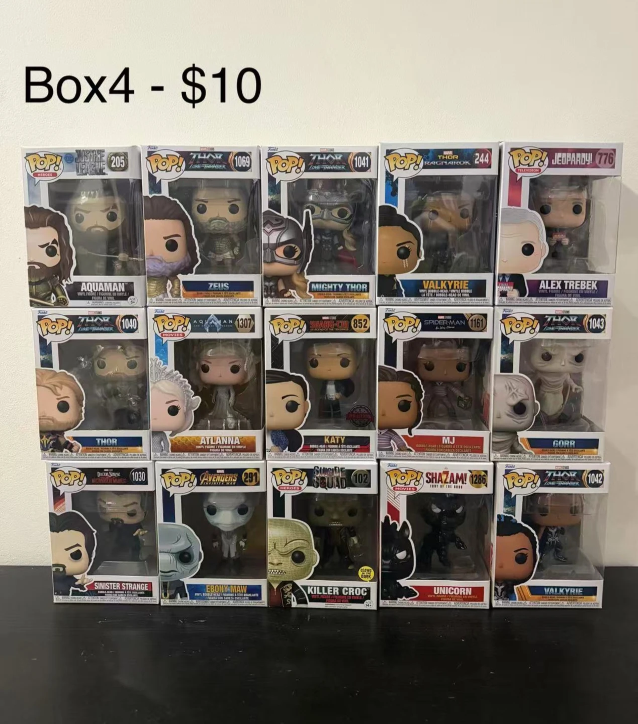 Selling Funko Pop! vinyl figures, featuring characters from DC and Marvel universes. These collectible figures are still in their original boxes. They're great for any fan's display shelf!