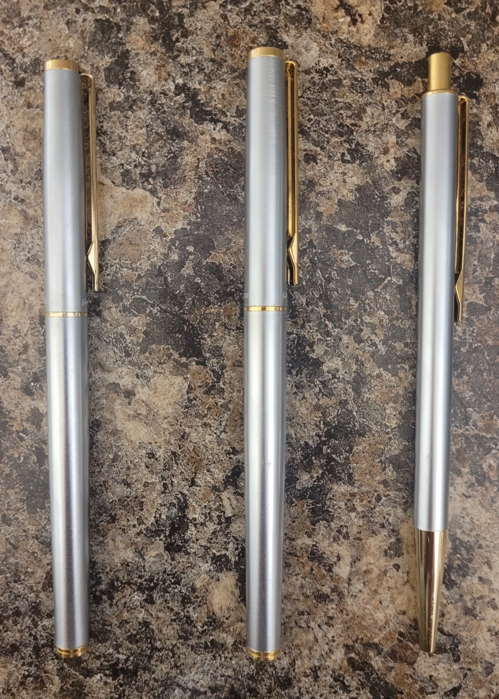 Set of 3 Silver Pens with Gold Accents