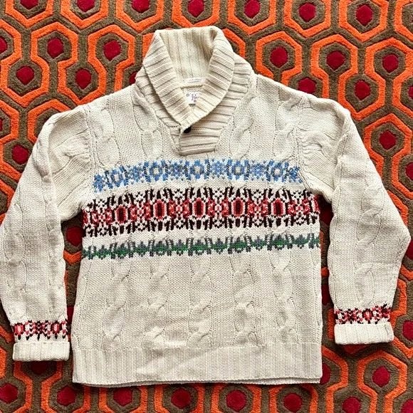 PICK UP YONGE & SHEPPARD. Very warm and cozy Fair Isle patterned merino wool sweater by Original Penguin. Great condition. Says size XL but fits more like a Large. Refer to measurements.