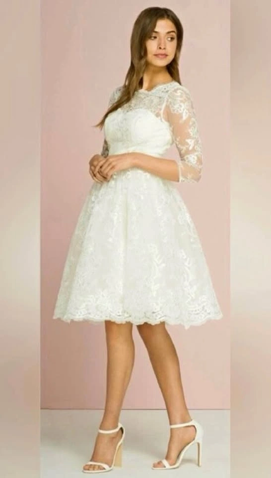 Charlize Embroidered Floral Midi Wedding Dress Size 8