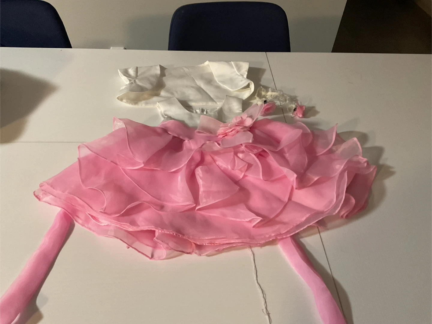 Pink Ruffled Dress with White Top and Headband